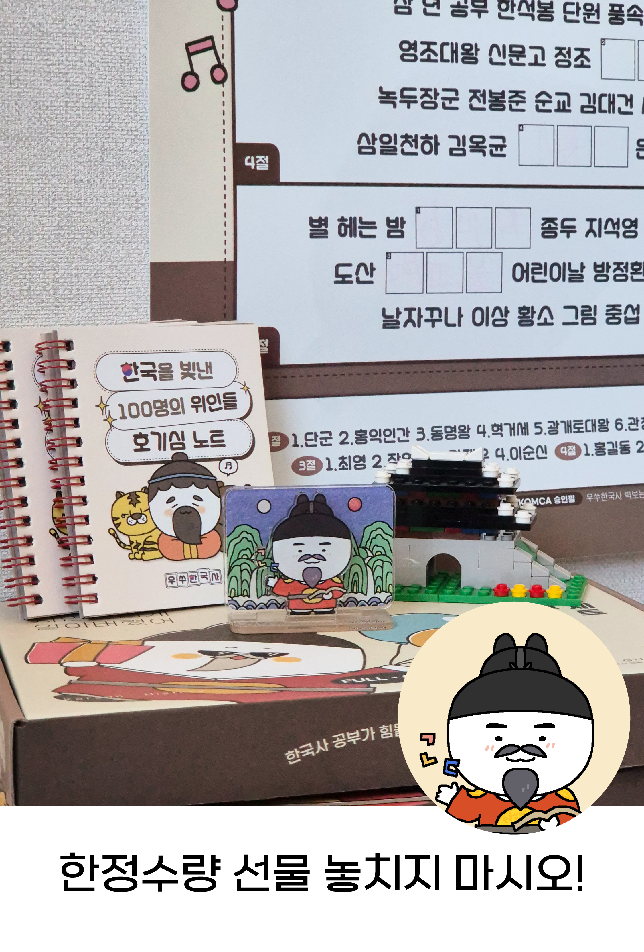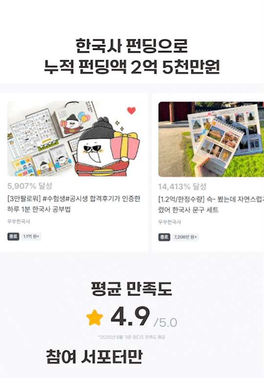 그동안 한국사 문구 풀세트로 3번의 앵콜 펀딩,