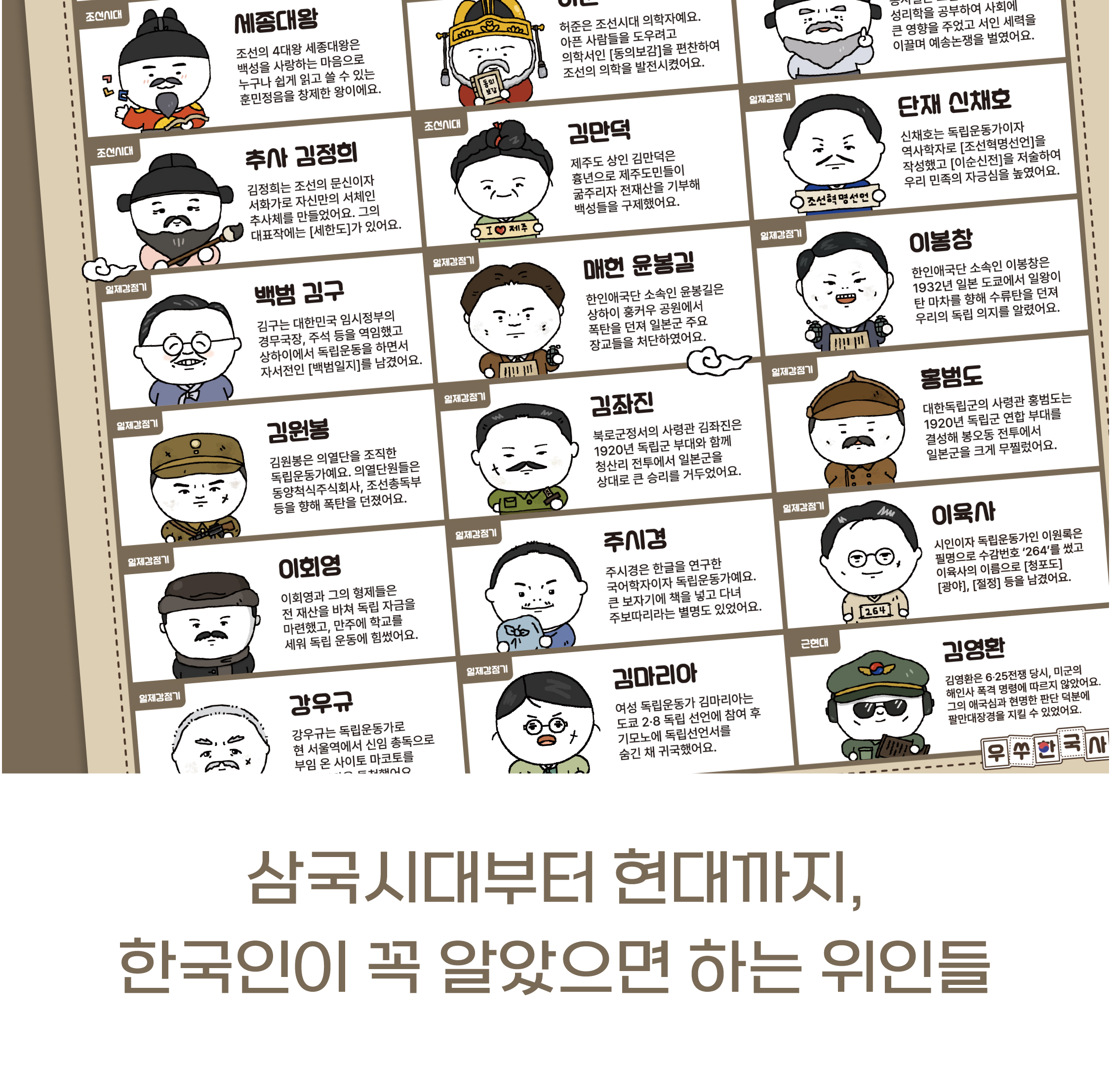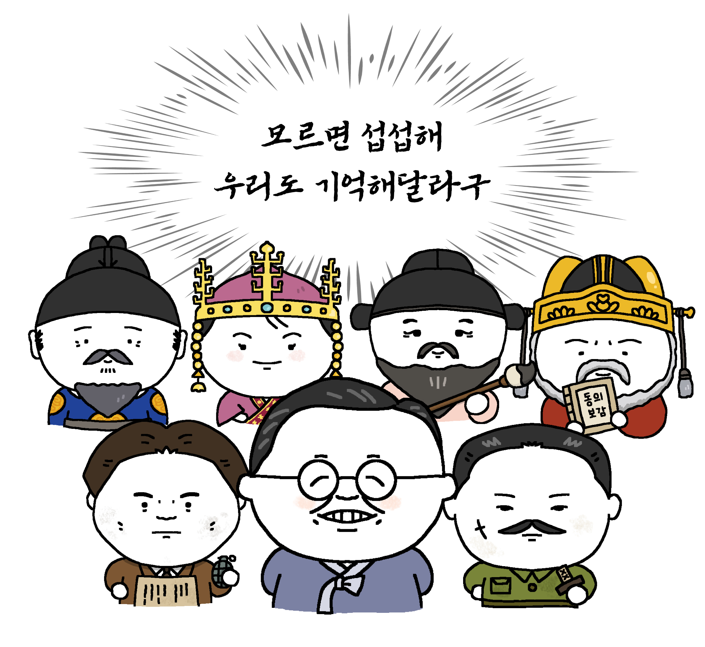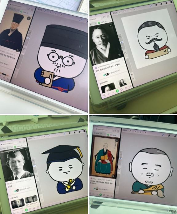 한국을 빛낸 100명 캐릭터 모~두 그렸고...