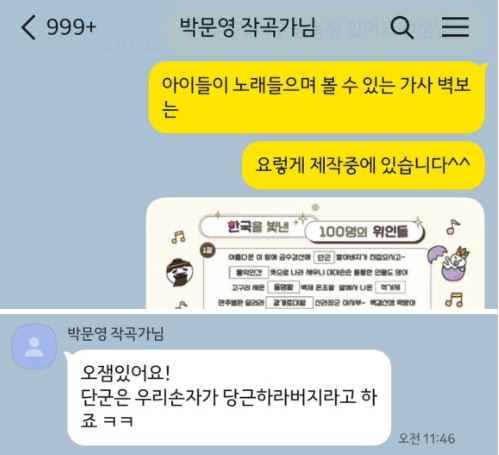 <한국을 빛낸 100명의 위인들> 작곡가님과 연락과..
