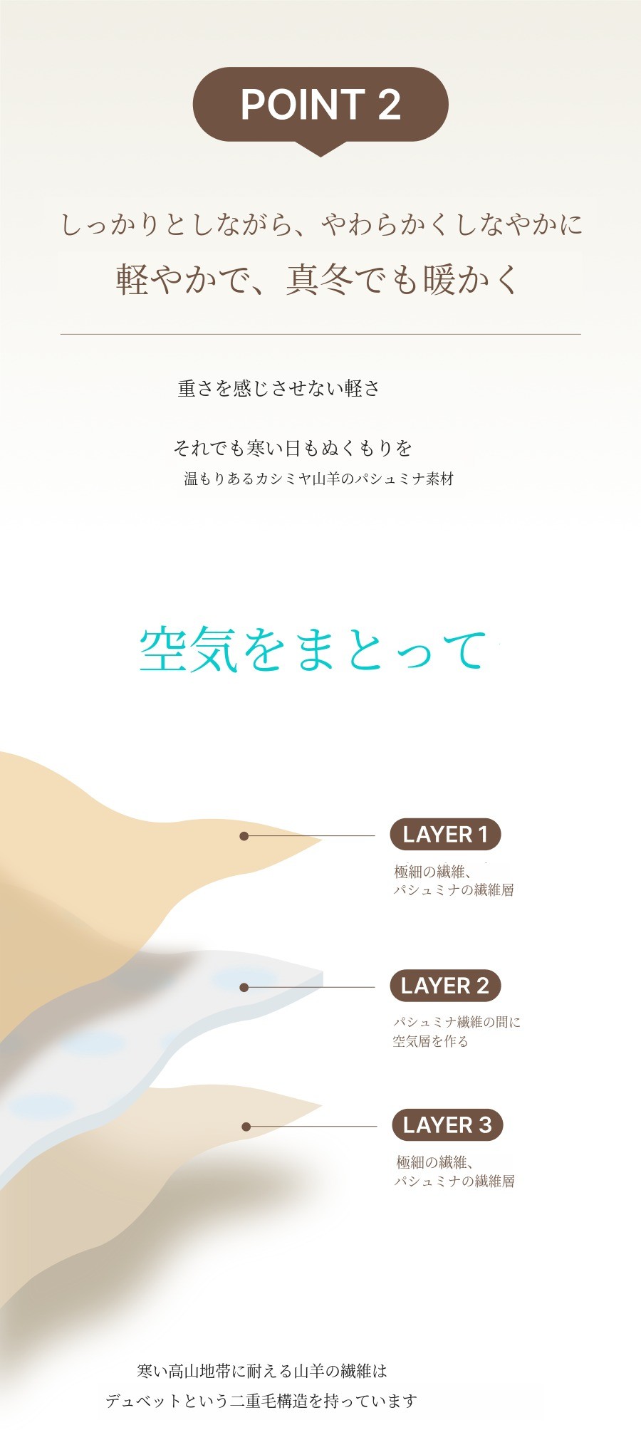 カシミヤよりも軽いですが、はるかに柔らかく保温性に優れた貴重な繊維です!