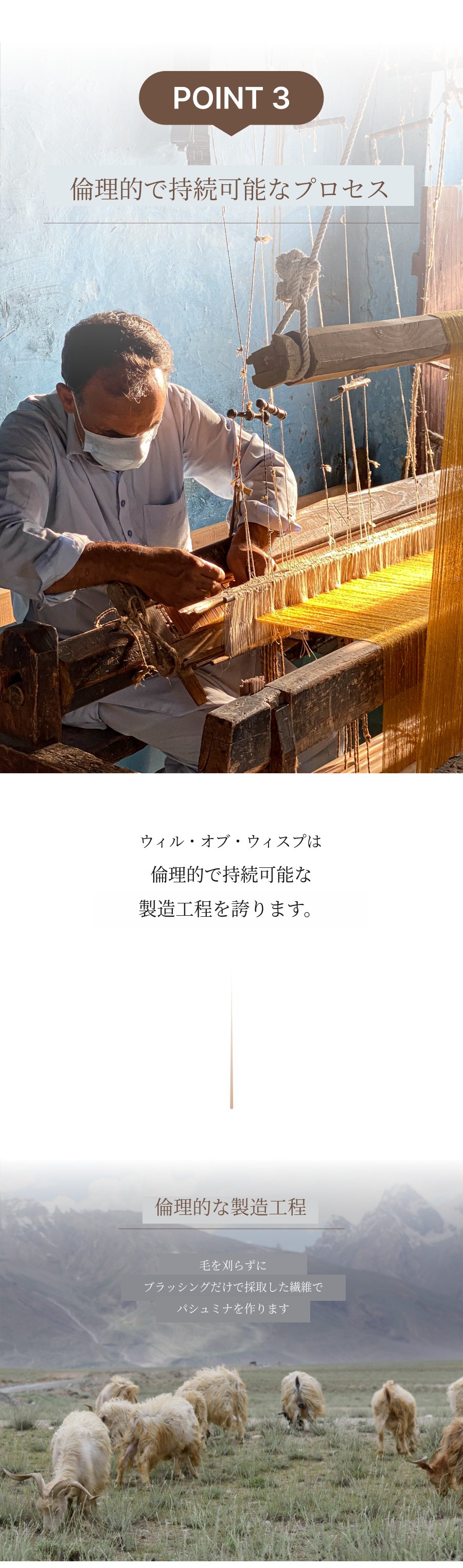 パシュミナは太さ12~14ミクロン、長さ44mm以上の非常に細い繊維です。
