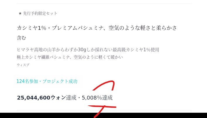 Wadiz初プロジェクト進行5,000% 以上達成率