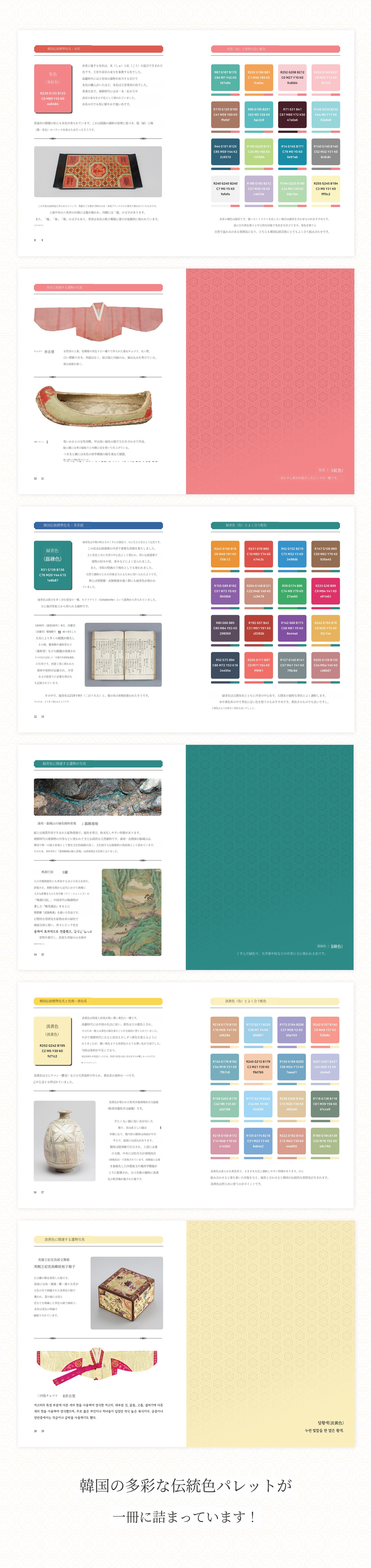 <韓国の伝統の色> を開いてみてください。 色に込められた先祖たちの生活と歴史を直接ご確認いただけます。 魅力的な痕跡と芸術の息吹。すべて創作アイデアとして活用できます。