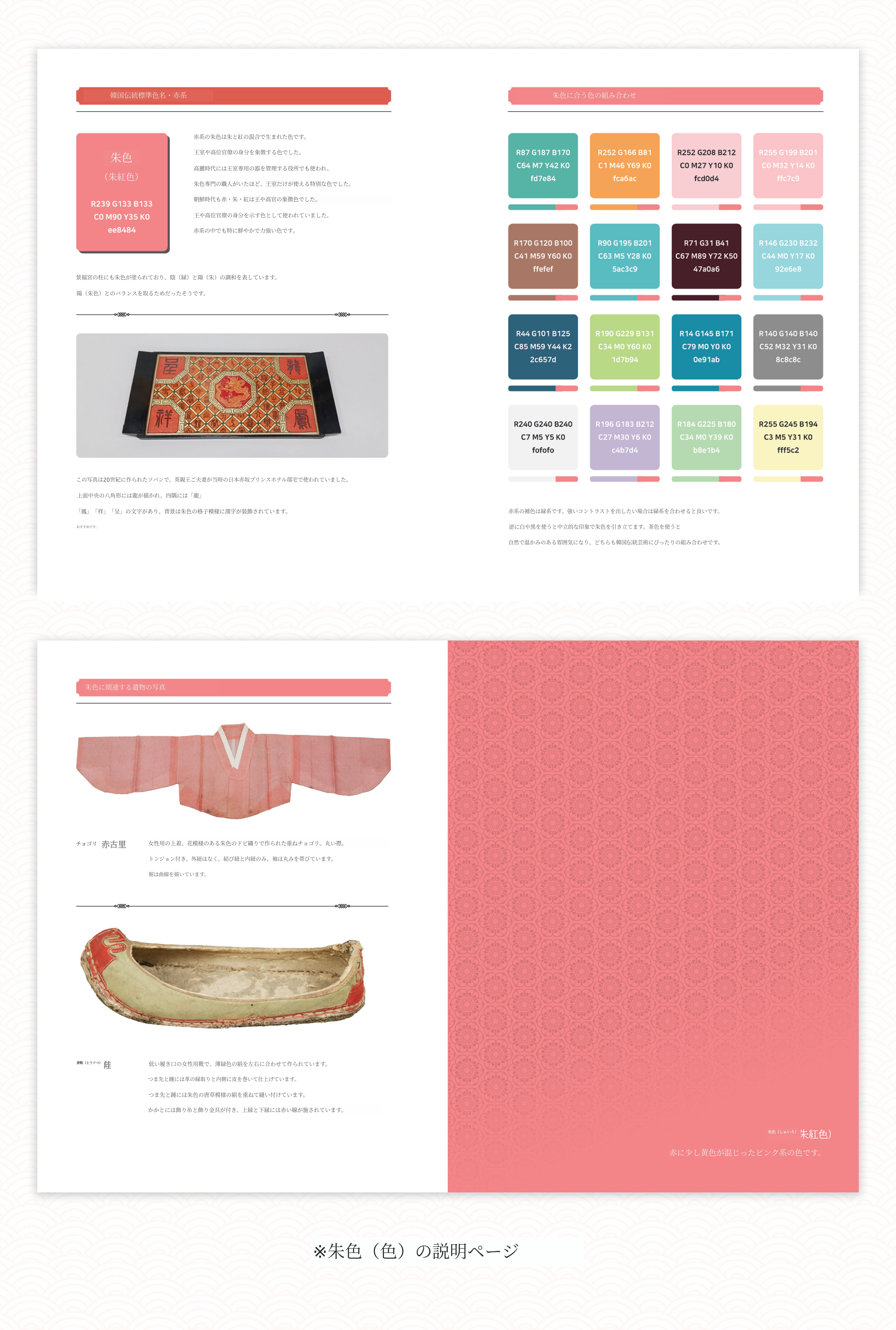 1. <韓国の伝統色>は国立現代美術館が発表した「韓国伝統標準色名および色相第2次試案」を基に制作された本です。多様なカラー紹介と説明、実際の遺物写真など豊富な内容を収録しました。ご参考の上、ぜひご支援をお願いいたします。