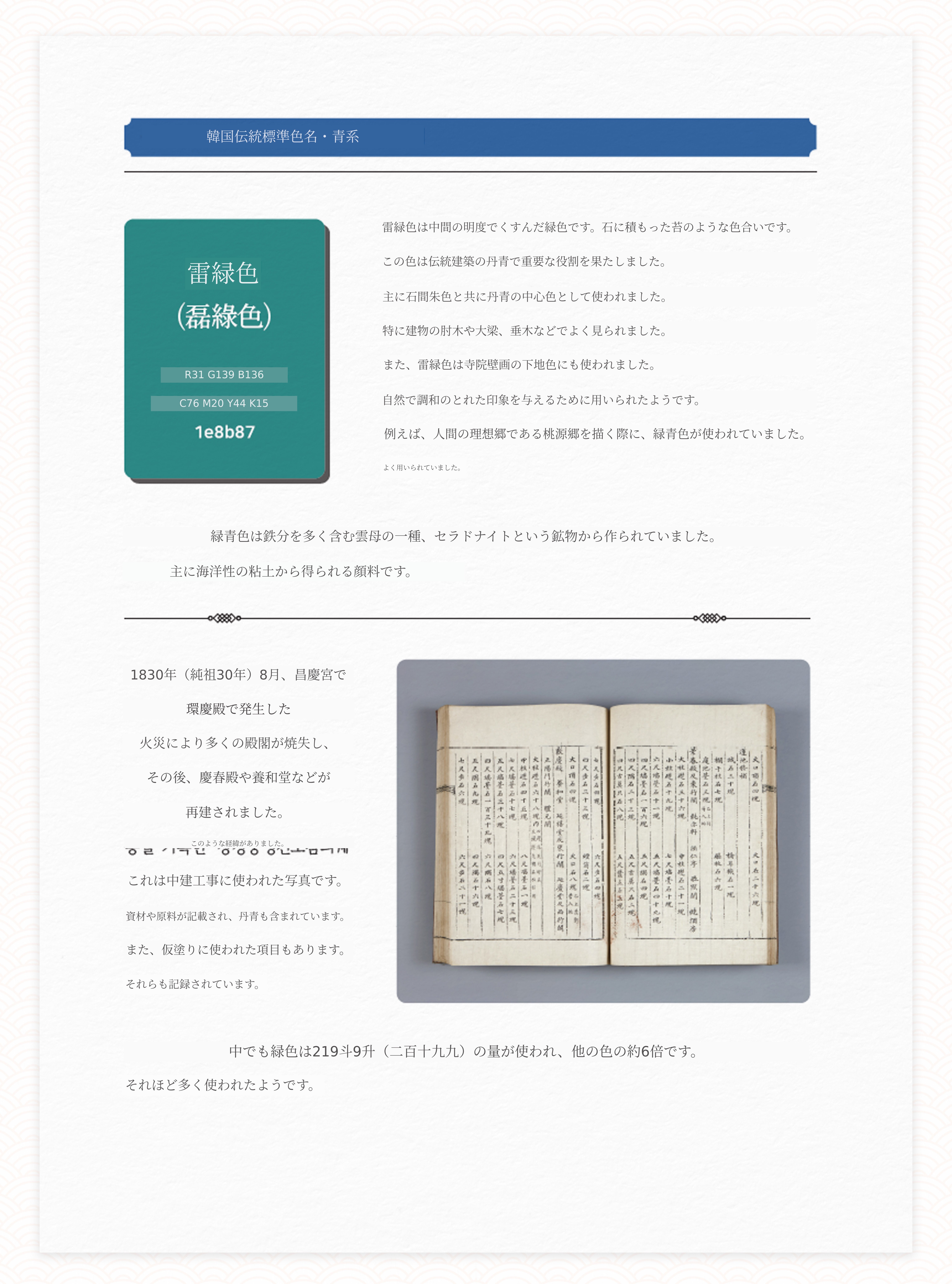 韓国の伝統カラーにご興味がある方には、十分にご満足いただける本です。