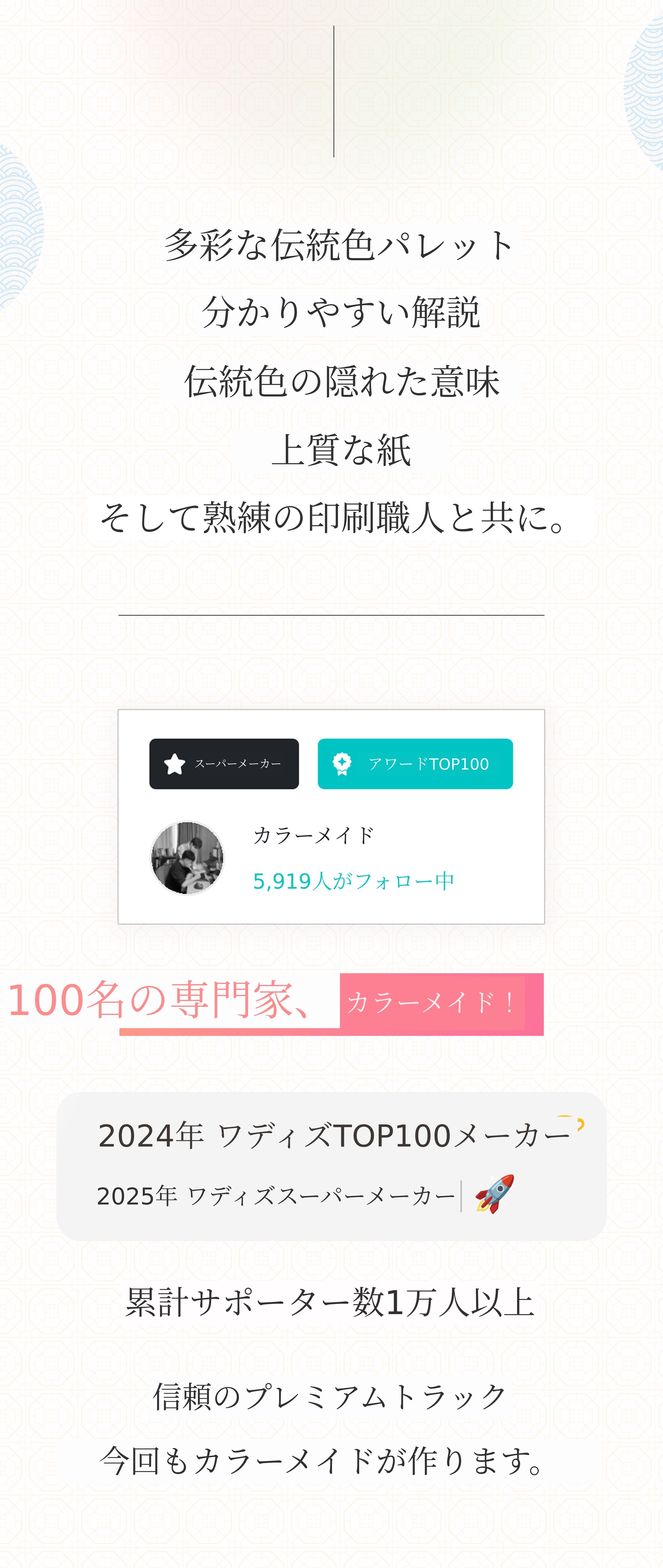 現在私たちの作業室には韓国の服飾、工芸品、文様、配色など韓国的デザインに関する本がたくさんあります。すべて過去の制作経験のおかげです。私たちは韓国の美が西洋と比べても全く劣らないと確信しています。このような確信を現実にするため、Wadizを通じて韓国の伝統色に関する図録をアーカイブすることになりました。 韓国の素晴らしい色彩が再び人々に見られ、再び日常の中に溶け込むことを願っています。それに値する本を作ります。美しい色彩に染まった<韓国の伝統色>図録に多くの関心をお寄せください。
