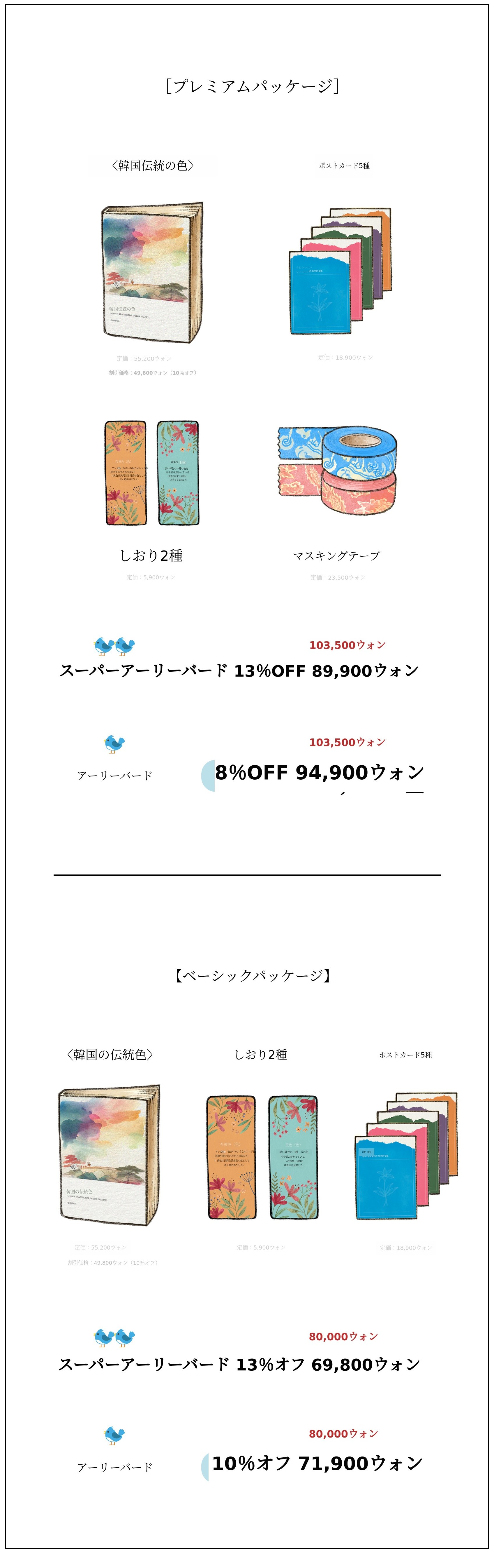 韓国の美しい伝統色がたっぷり詰まったフルカラーカタログ、そしてさまざまなボーナスリワード。