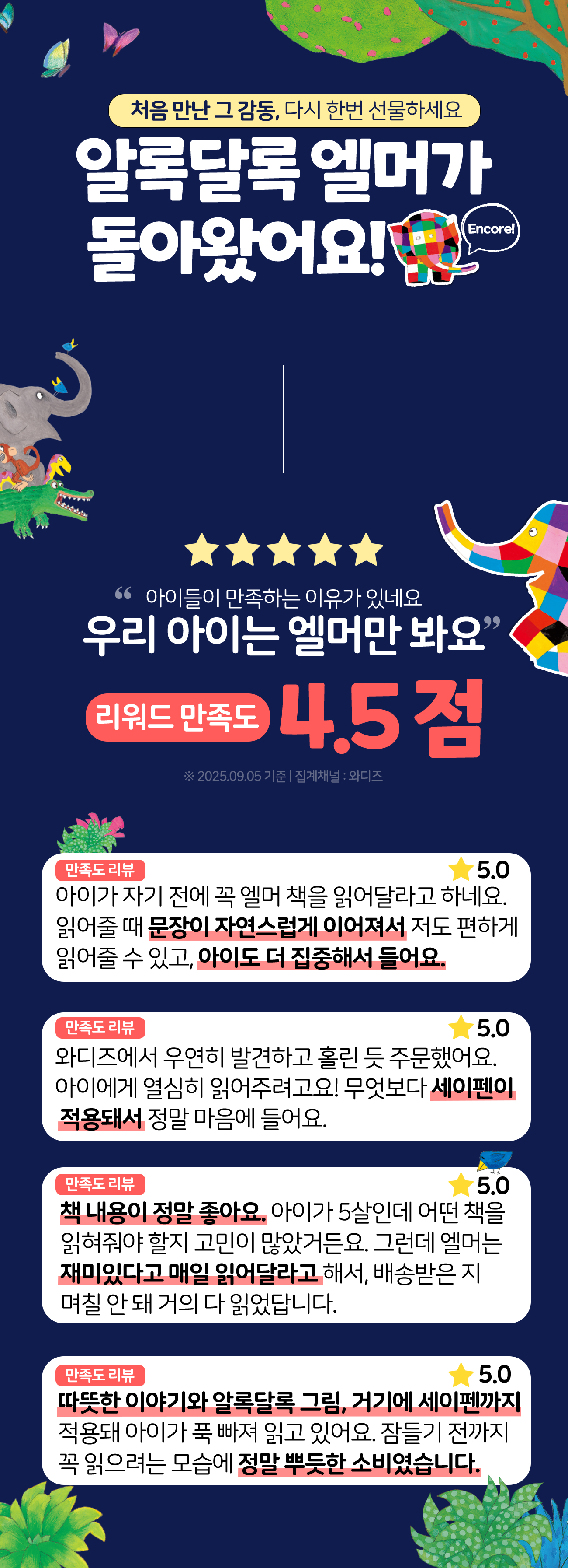 이번 펀딩을 통해 더 많은 아이들이 엘머를 만나고, 즐겁고 의미 있는 책 읽기의 가치를 경험하길 바랍니다.
