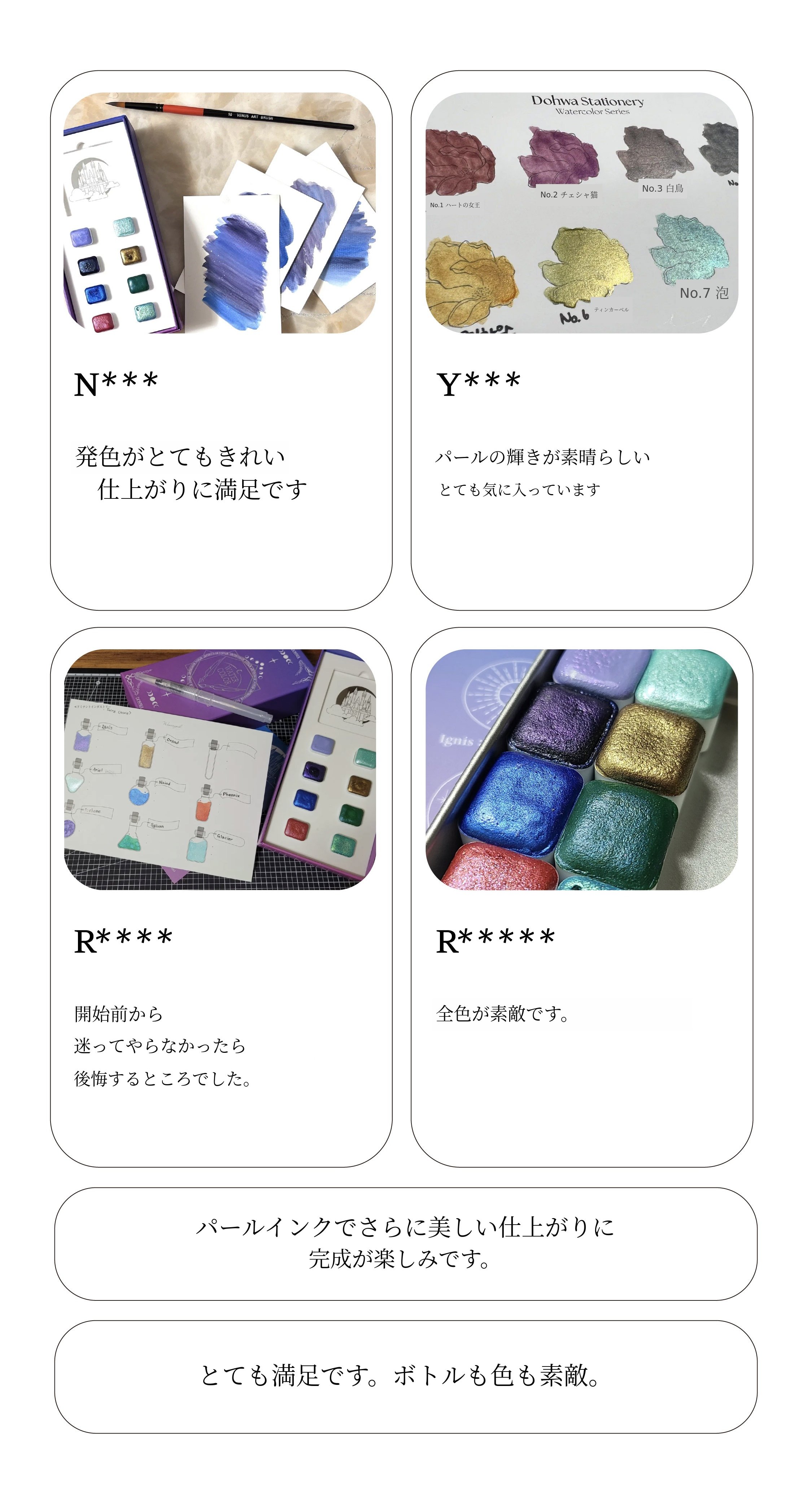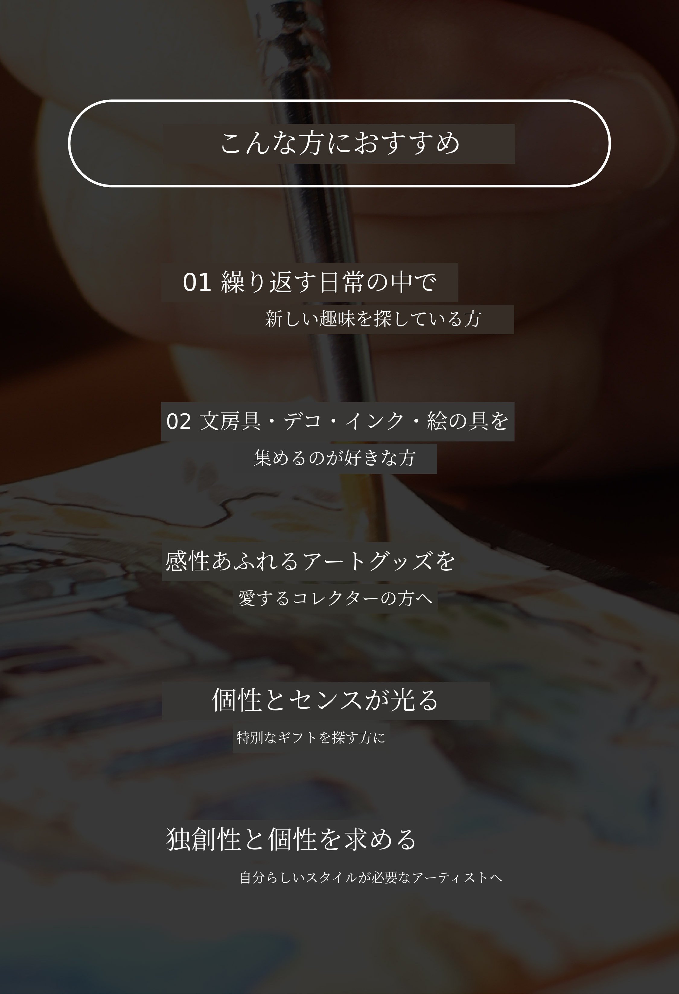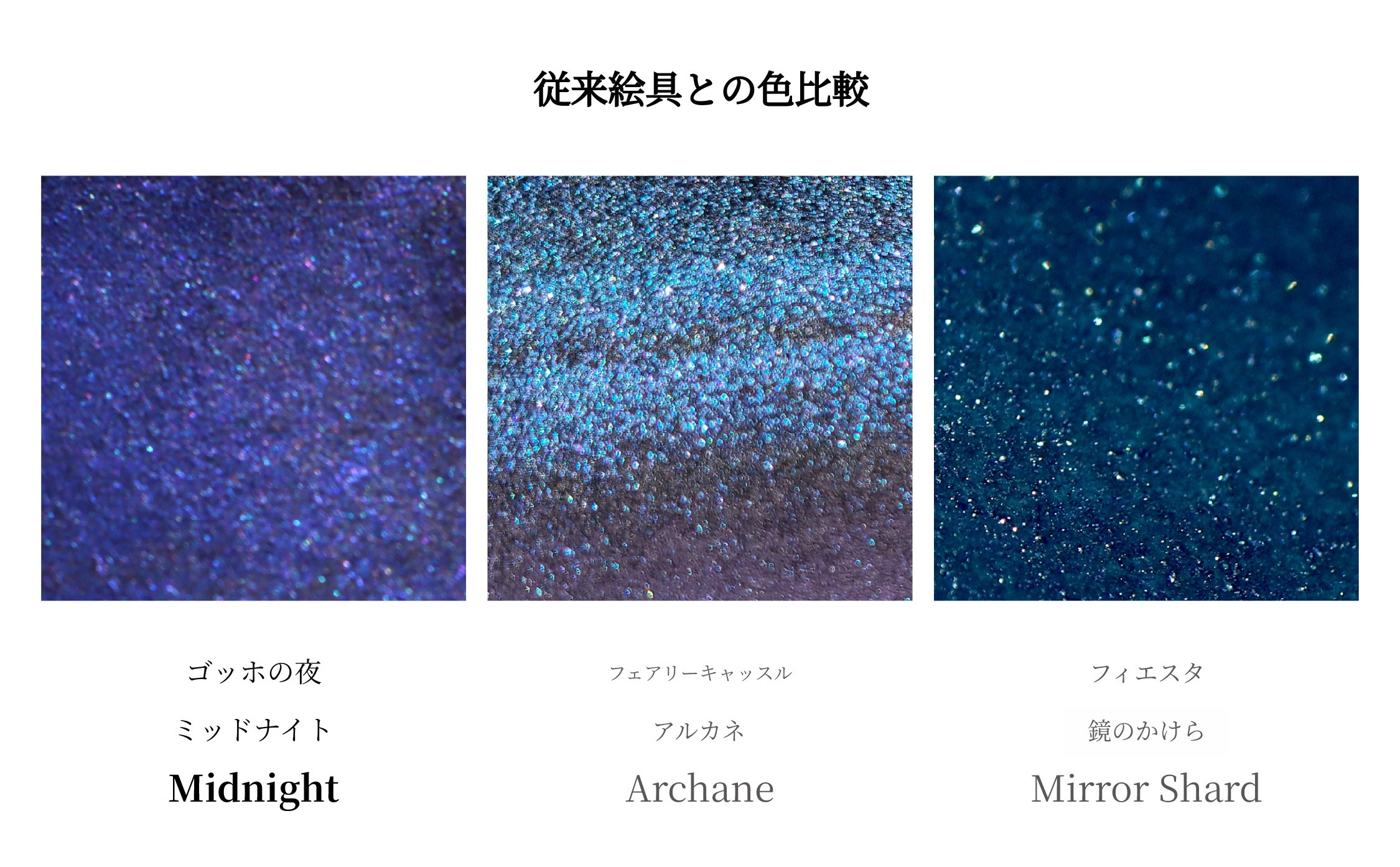 これまで主にマニア層に愛されてきたカラーインクとパール固形絵具の美しさを、もっと多くの方と分かち合いたいという思いから始まりました。