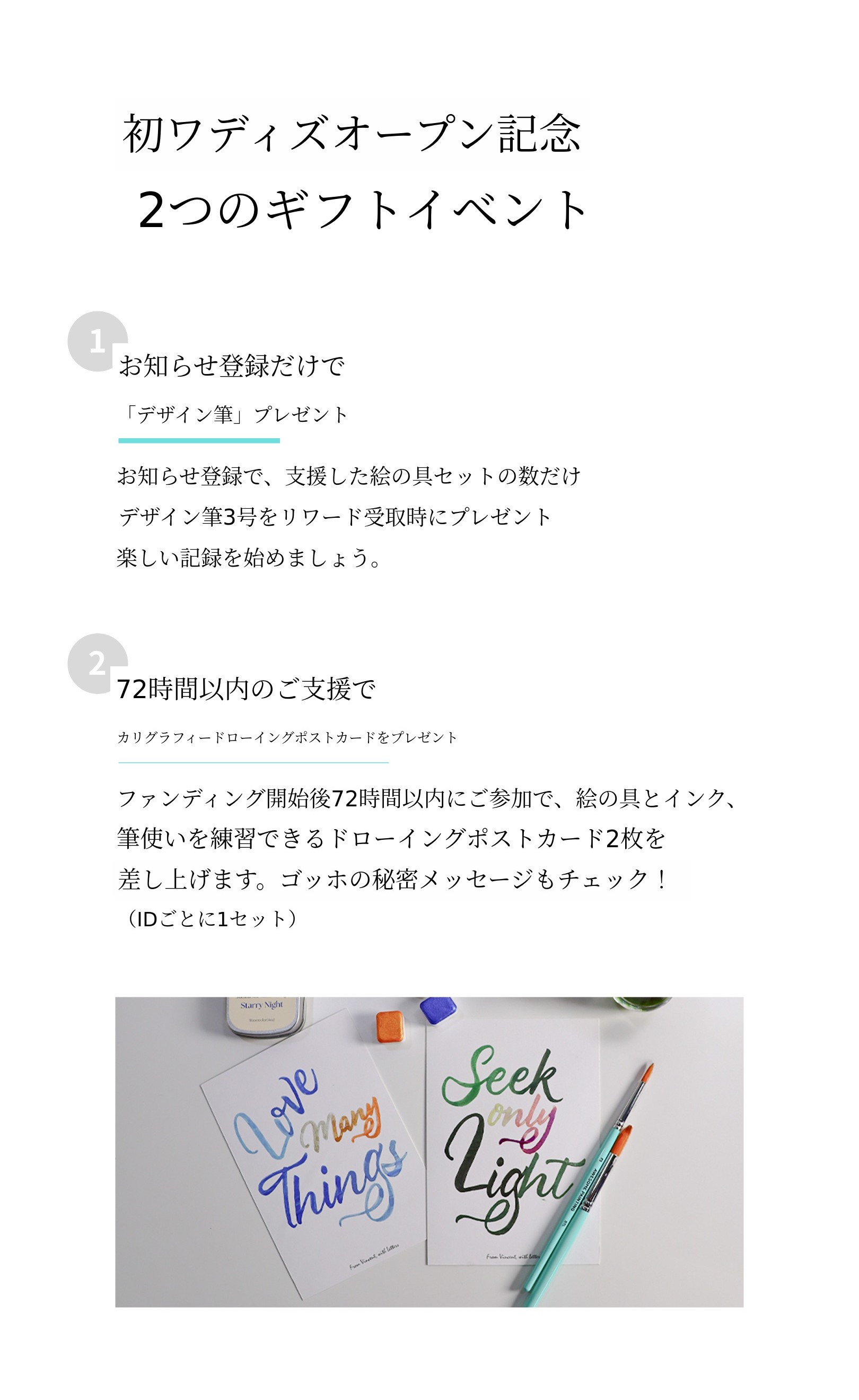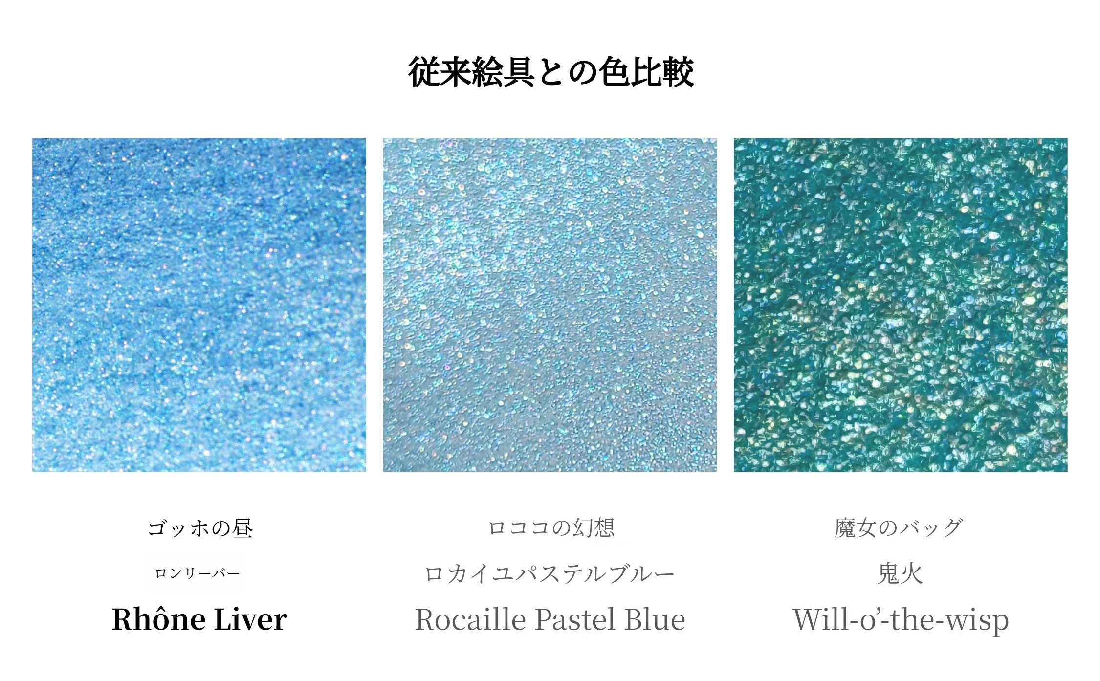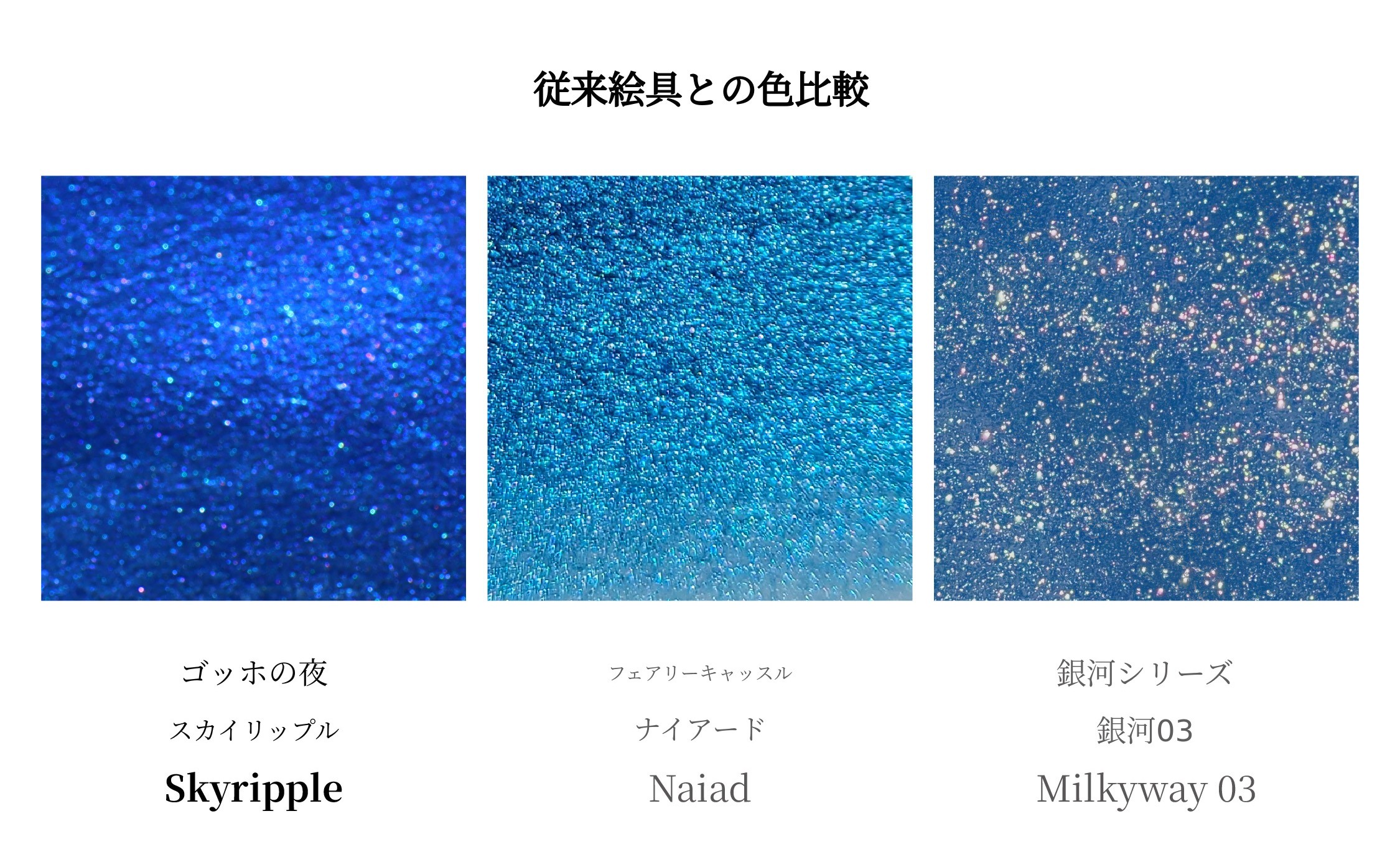 これまで主にマニア層に愛されてきたカラーインクとパール固形絵具の美しさを、もっと多くの方と分かち合いたいという思いから始まりました。