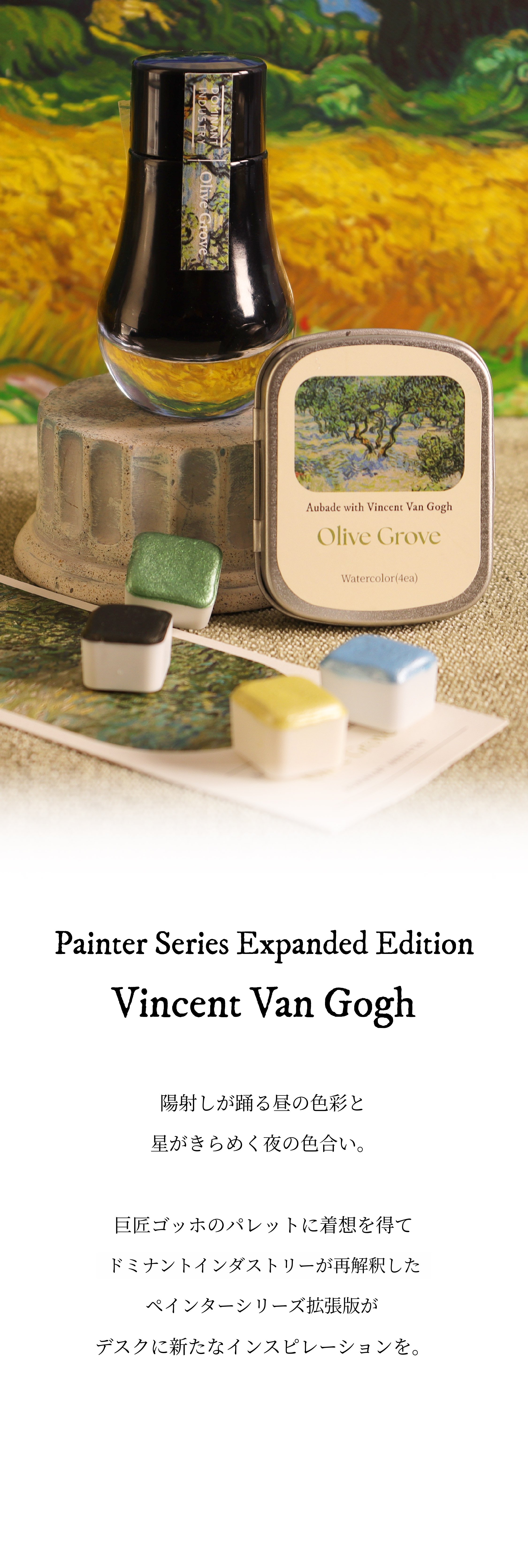 ゴッホが愛したサイプレスの力強いシルエットを表現した色。深く重みのあるカーキ色、暗く濃密なパールが重厚な存在感を加えます。