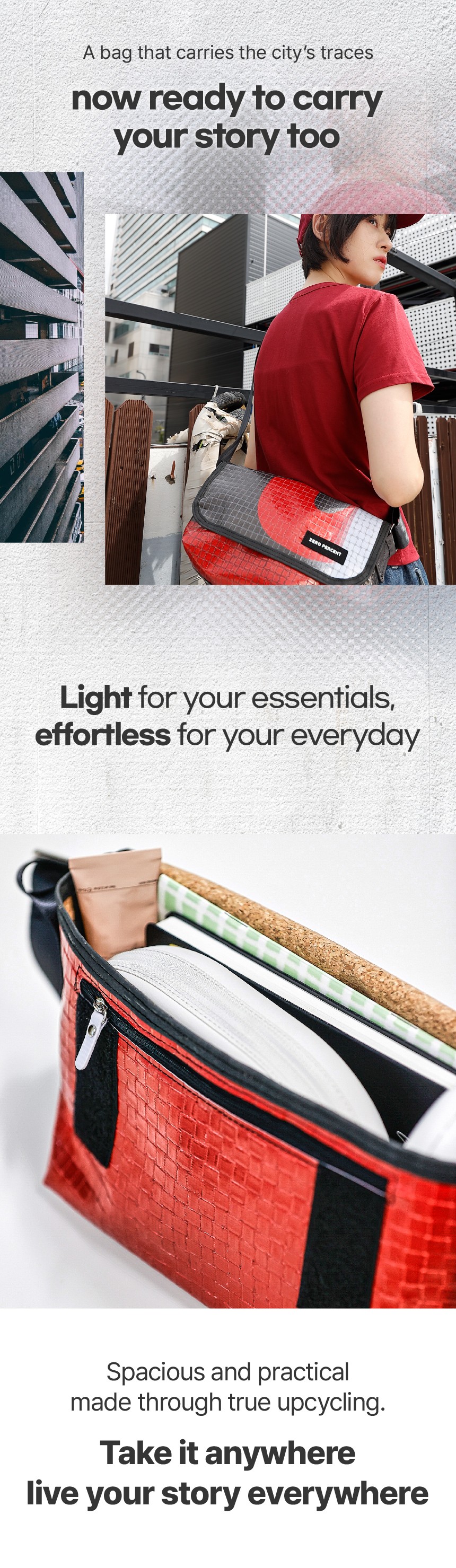 都市の痕跡を運ぶバッグ—今、あなたの物語 も運ぶ準備ができました。