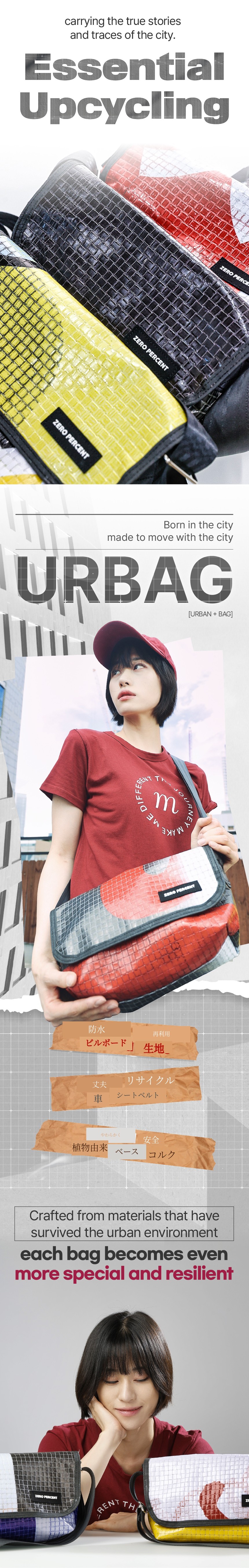 URBAGは、すべての廃棄素材に第二の人生があるべきだと信じるサステナブルデザインスタジオZeroPercent [0%]が生み出したアップサイクルバッグのラインです。