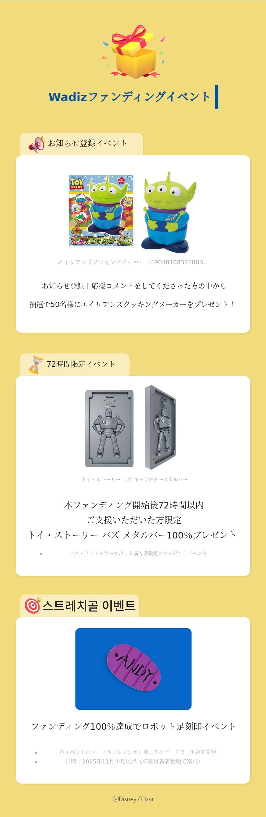 今回のプロジェクトはトイストーリー30周年を記念して準備した特別な試みです。単なる販売ではなく、サポーターの皆様と直接コミュニケーションを取り、より多くのご意見を伺うためにWadizファンディングを行うことになりました。
