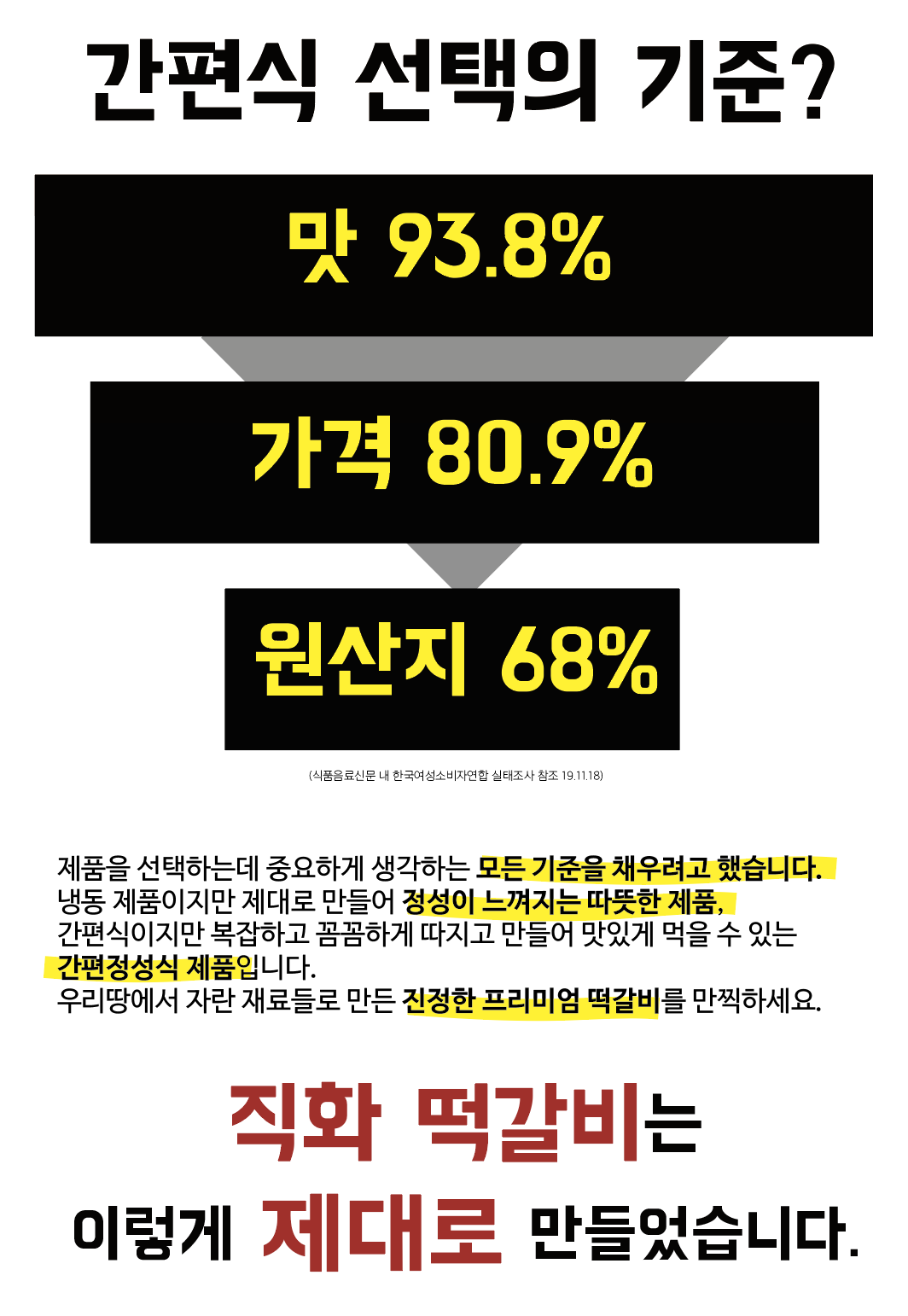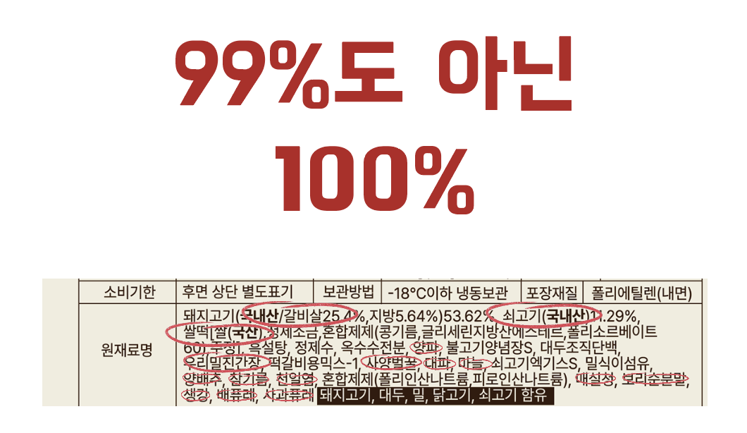 보이시나요? 모든 원재료를 국내산으로 가득 채웠습니다. 찾아보세요. 양념육에서 가장 중요한 양념에 들어가는 간장의 콩부터 국내산인지. 간편하게 먹는 간편식이지만 제품만큼은 간편하게 만들지 않고 아낌없이 제대로 만들었습니다.