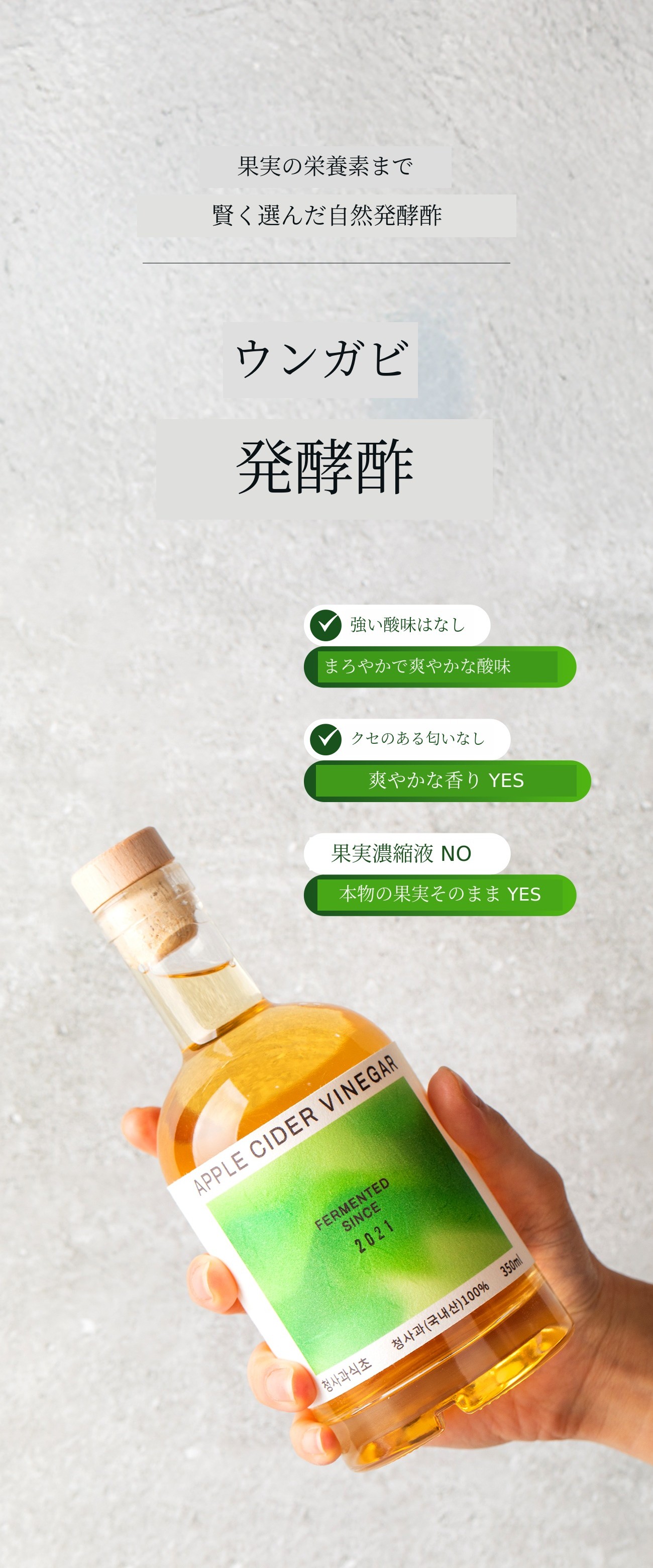 ウンガビ酢は少量手作業で作られる「自然発酵生酢」です。既存流通市場の大量生産酢とは異なり、この商品の真実性と誠実な哲学に共感してくださるサポーターの皆様と直接お会いしたいと思いました。