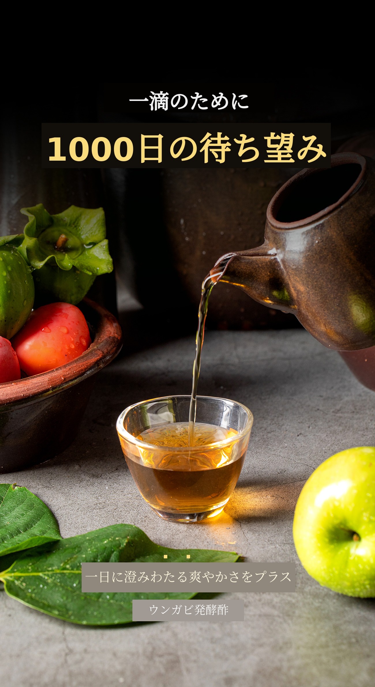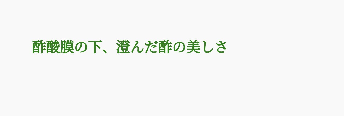 私は自然の時間と発酵の力を信じています。早く作った加工酢ではなく、自ら手作業で仕込み、最低150日から最大360日まで発酵させる本物の酢!