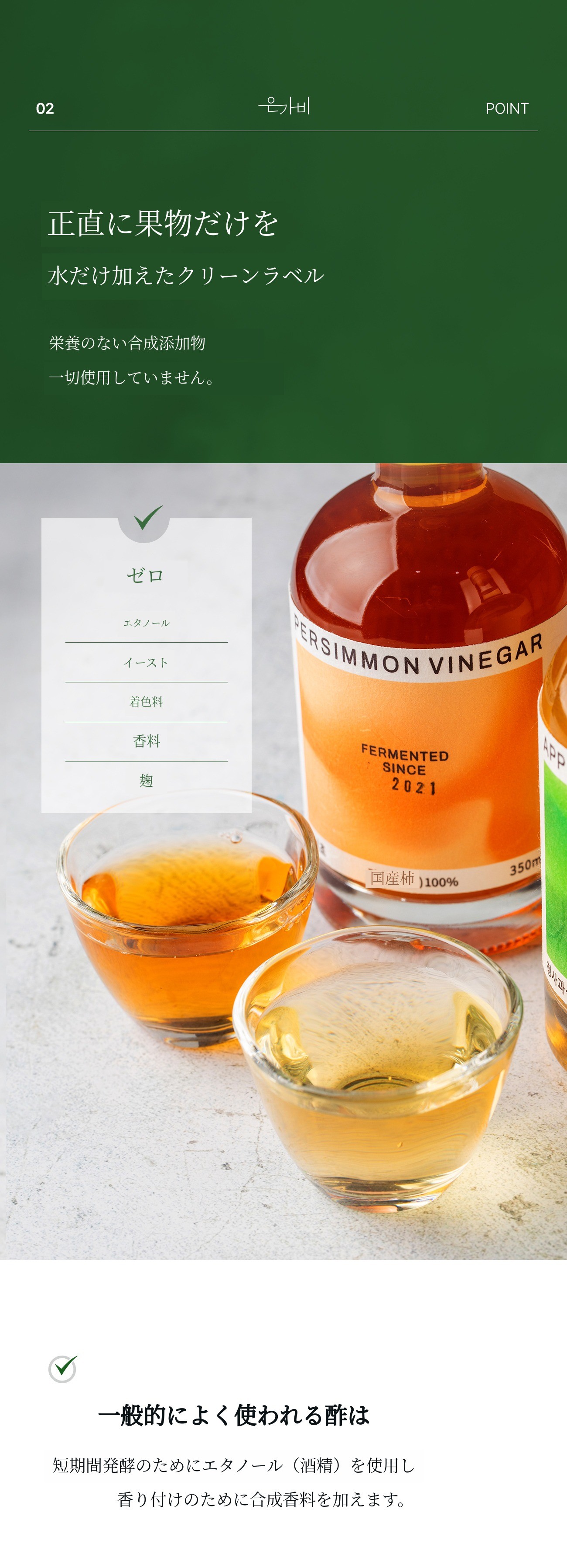 アルコールも、添加物も、人工香料も一切加えず、自然そのままの酢を作っています。