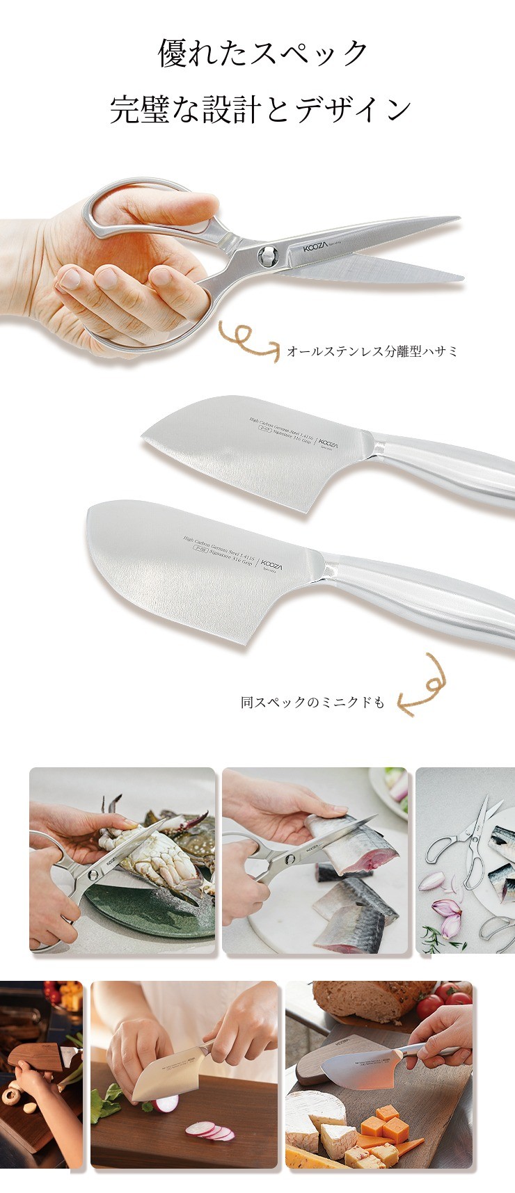 繊細な食材の下ごしらえや厚い食材も、ためらわずにスッキリとカットしてみてください。