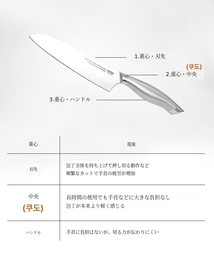 重心が中央にある包丁は、