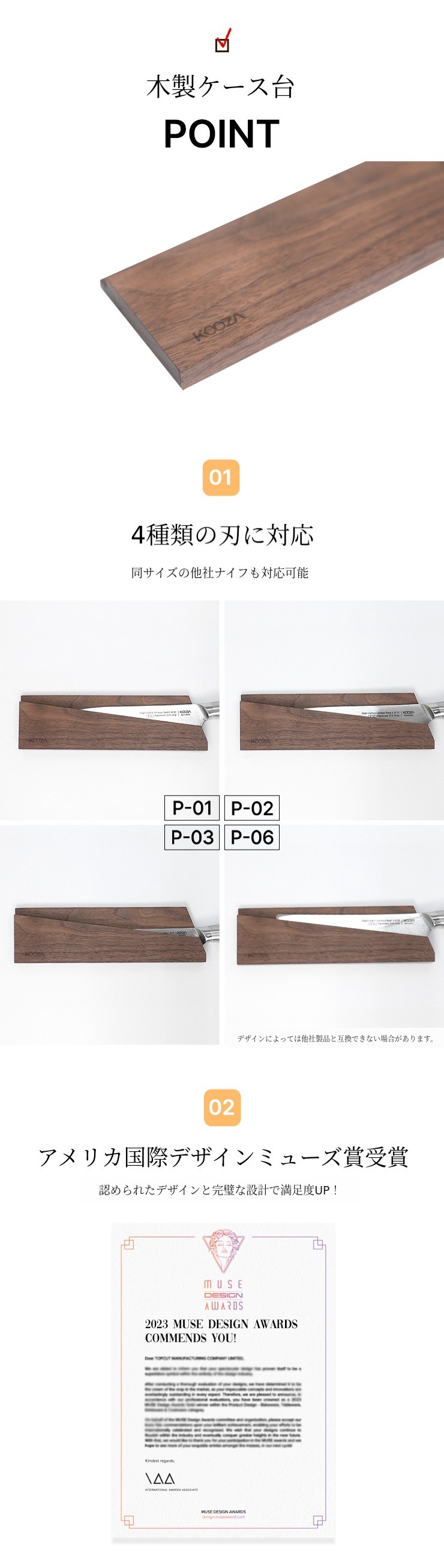 木製ケース小にはP-10(ペティ)は対応していません。
