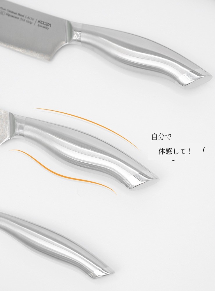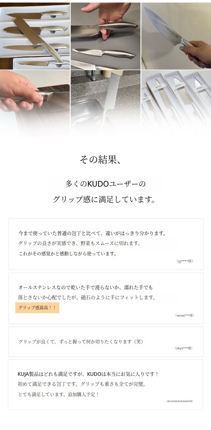 ヨーロッパ ドイツ オウトクンプ社の1.4116の刃と316ステンレスを使用して作られたハンドルで作られたクドシリーズ。そこに数多くの修正を重ねて誕生したグリップ感でユーザーの満足感 をさらに高めます。
