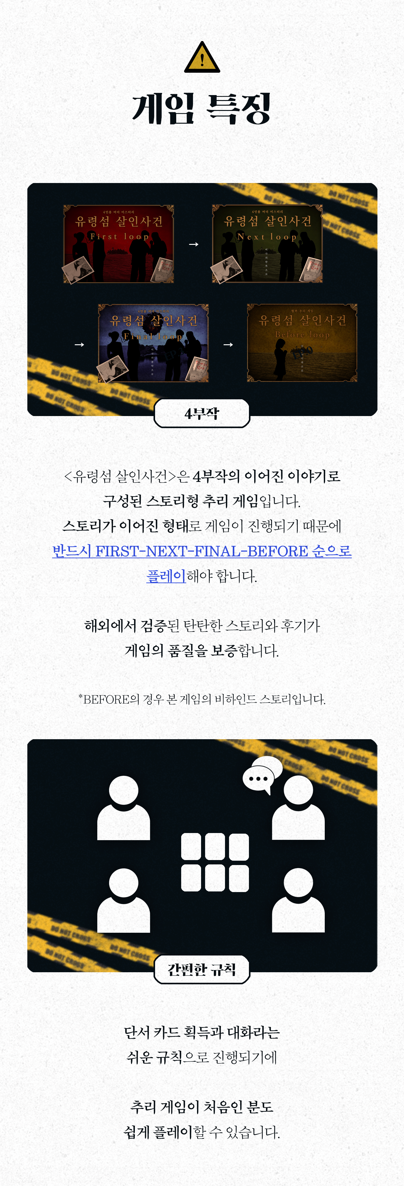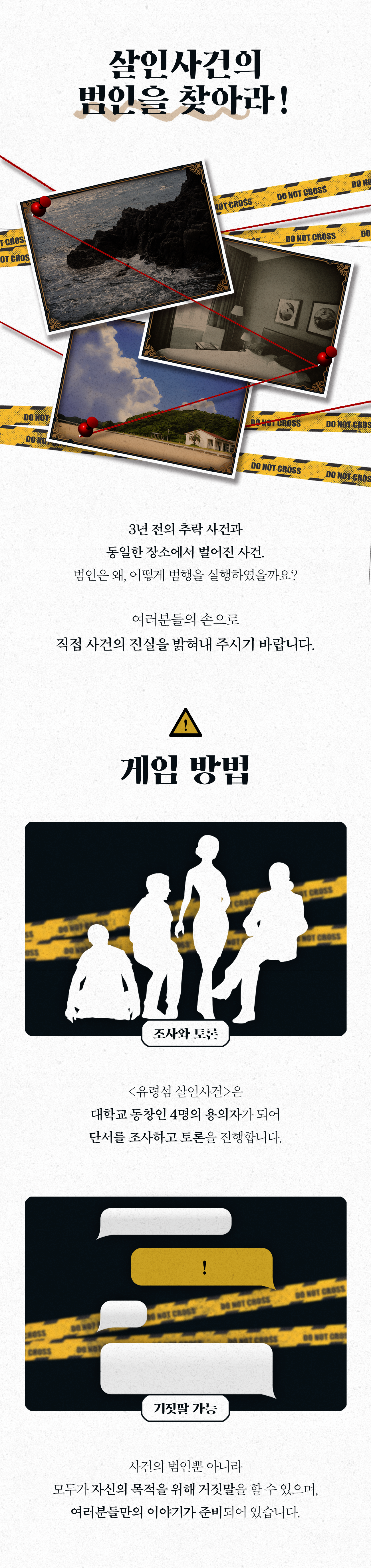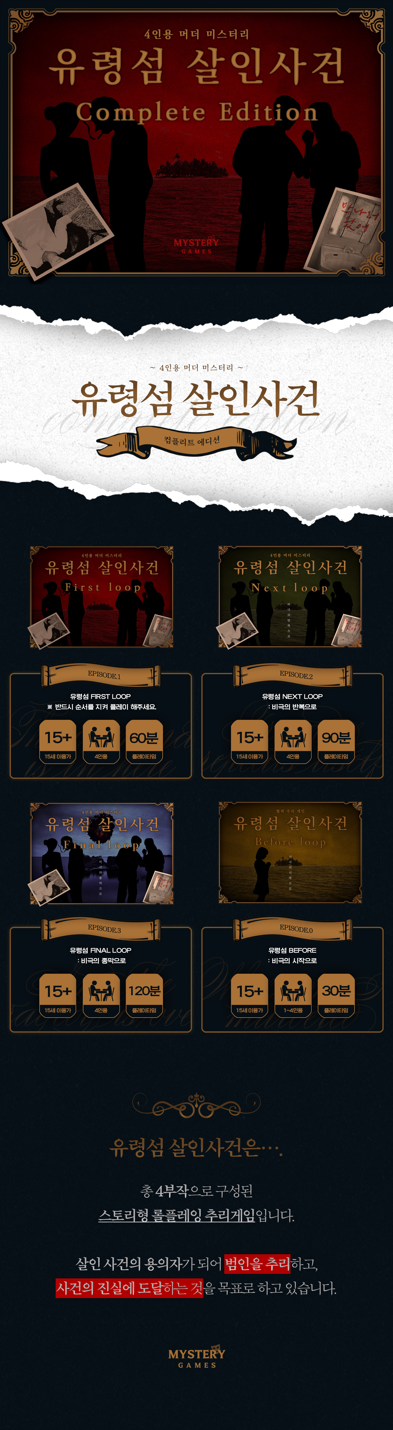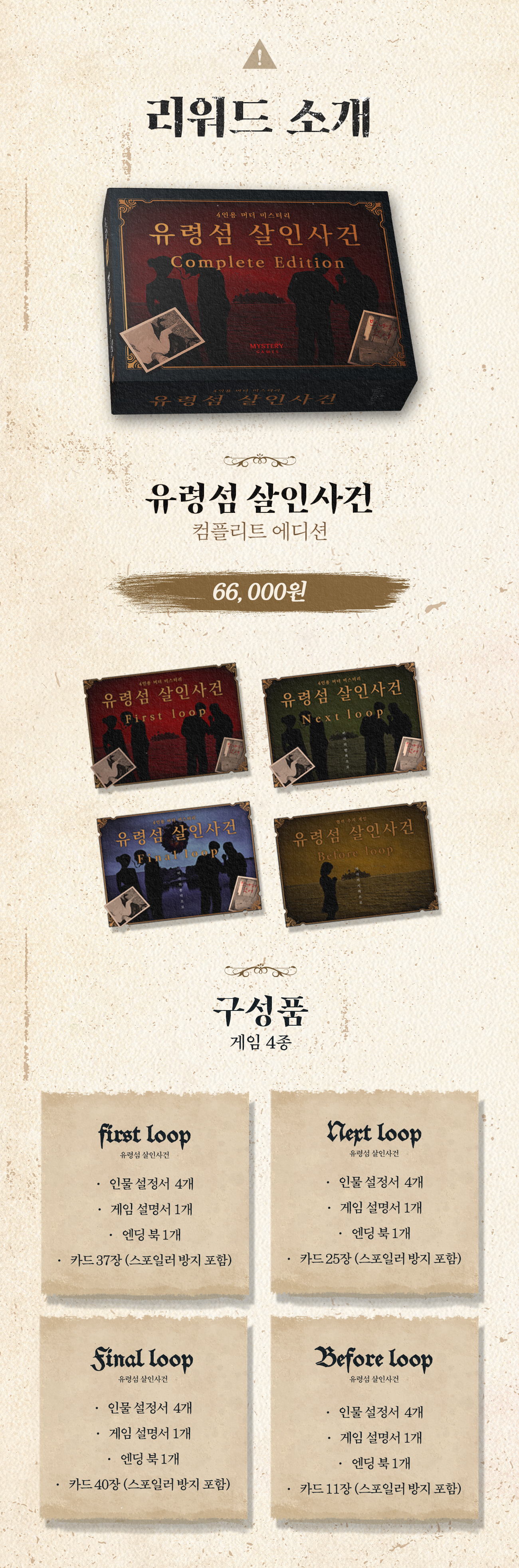 지난 2024년 <운명의 세 여신>이 성공적으로 후원할 수 있었던 이유 중 하나는 후원자분들에게 3부작을 통한 다양한 스토리와 접근성이 좋은 간단한 규칙 덕분이라고 생각합니다. 저희는 이번 유령섬 프로젝트 또한 이와 유사하다고 판단하여 보다 많은 분들에게 추리, 머더 미스터리 보드게임을 소개하고자 와디즈에서 프로젝트를 진행하게 되었습니다. 앞으로도 다양한 추리 머더 미스터리 보드게임을 선보일 수 있도록 많은 관심 부탁드립니다.