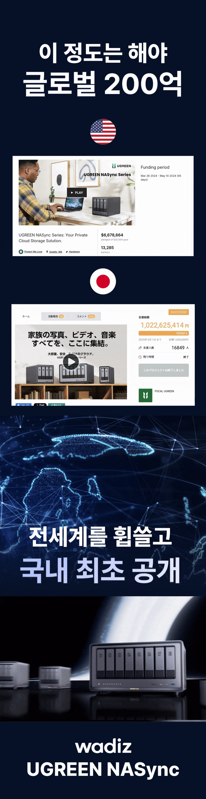 저장의 판도를 바꿀 유그린 나스는 이미 미국과 일본 등 전세계 다양한 나라를 시작으로 제품력을 입증받고 있습니다. 이젠 한국 최대의 크라우드 펀딩 플랫폼인 와디즈를 통해 유그린 나스의 제품력을 입증받고자 합니다.
