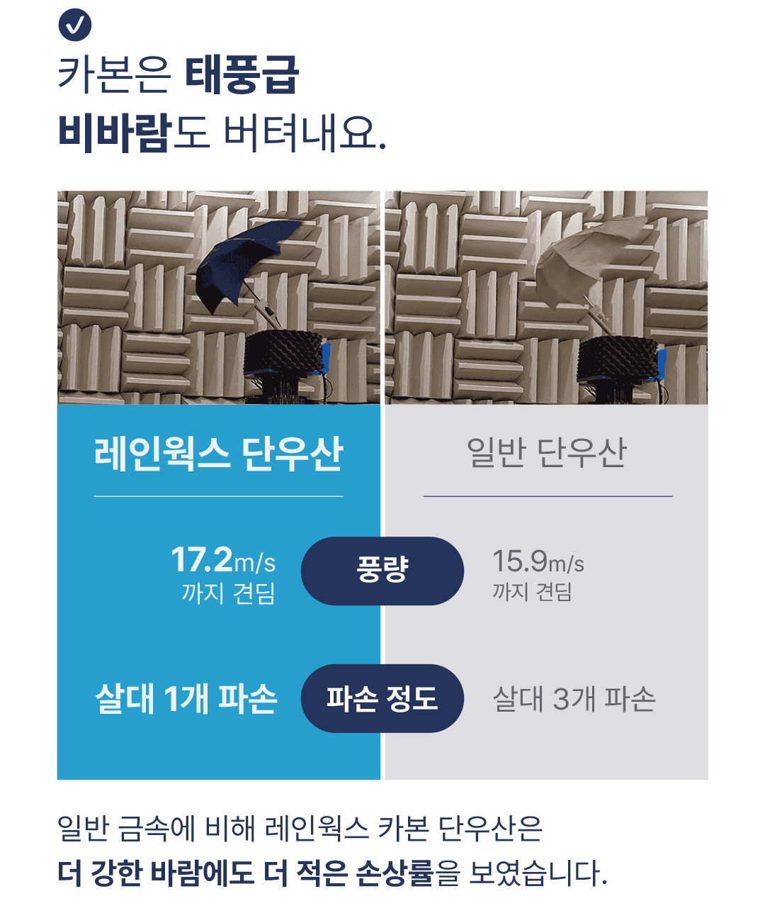 저희는 카본 소재를 활용하여 오래쓰는 우산을 지향합니다. 그래서 많은 양의 우산 폐기물을 줄이는데 기여하고, 일상에 꼭 필요한 우산의 자원순환을 위해 우리가 할 수 있는 활동이라 생각합니다.