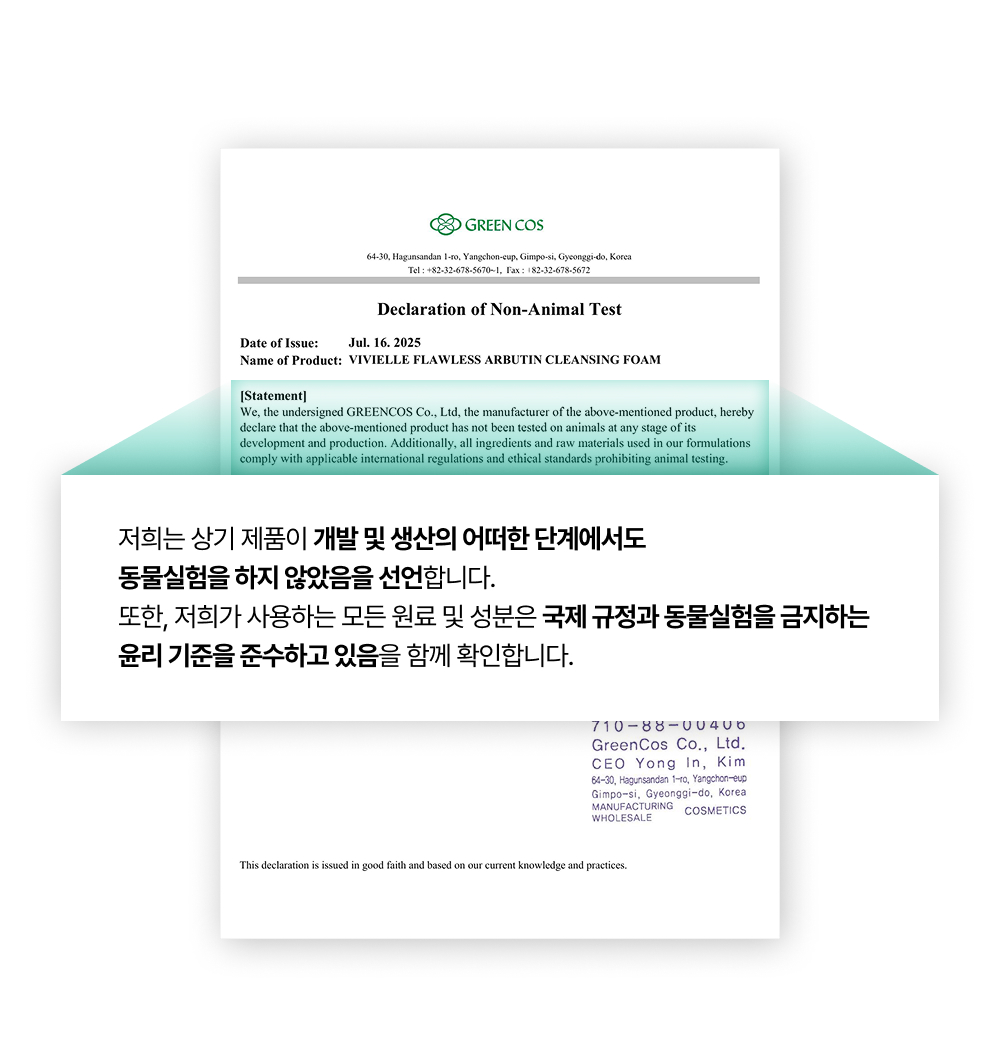 눈에 안 보인다고, 없는 게 아니니까요. 비비엘르 플러리스 알부틴 클렌징폼을 구매하시는 모든 분들에게 공식적인 문서로서 증명하겠습니다.