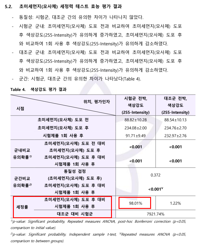 ✅ POINT1. 미세먼지(모사체) 세정력 인체 적용 시험 완료