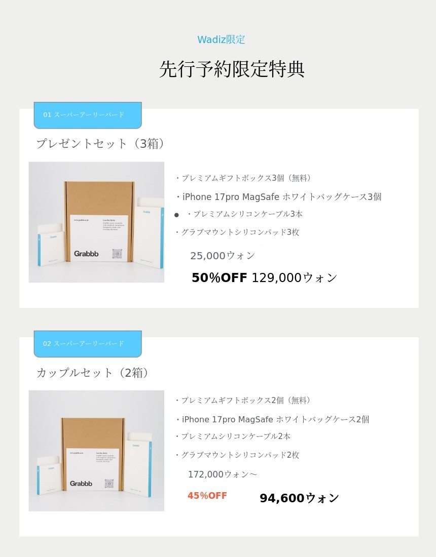 - 配送に関するお問い合わせチャンネル:www.grabbb.co.kr / カカオトークチャンネル名:グラッビコリア