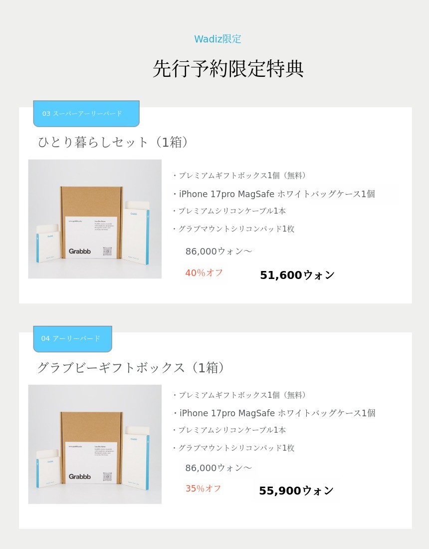 - A/S受付方法 : www.grabbb.co.kr / カカオトークチャンネル名 : グラッビコリア