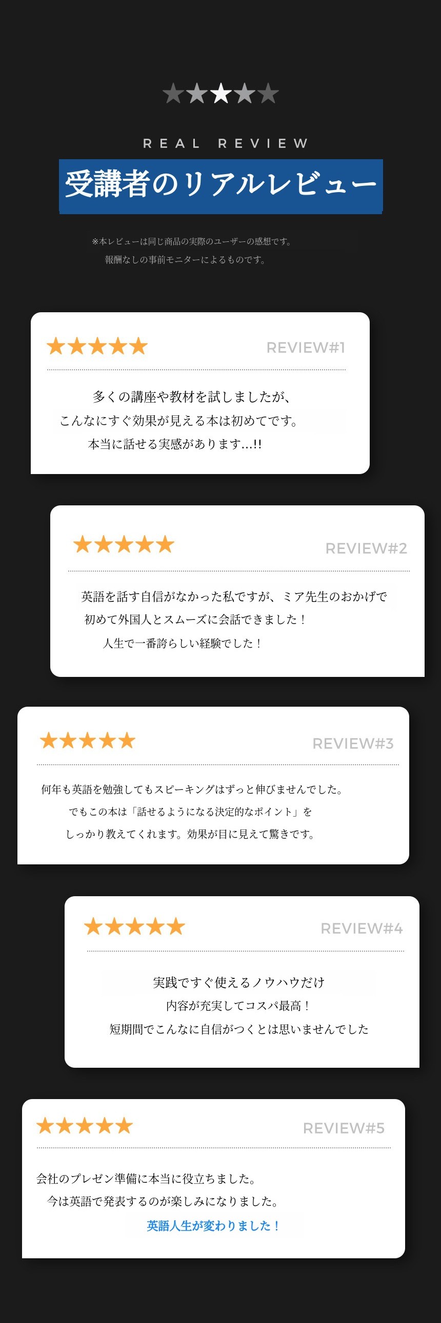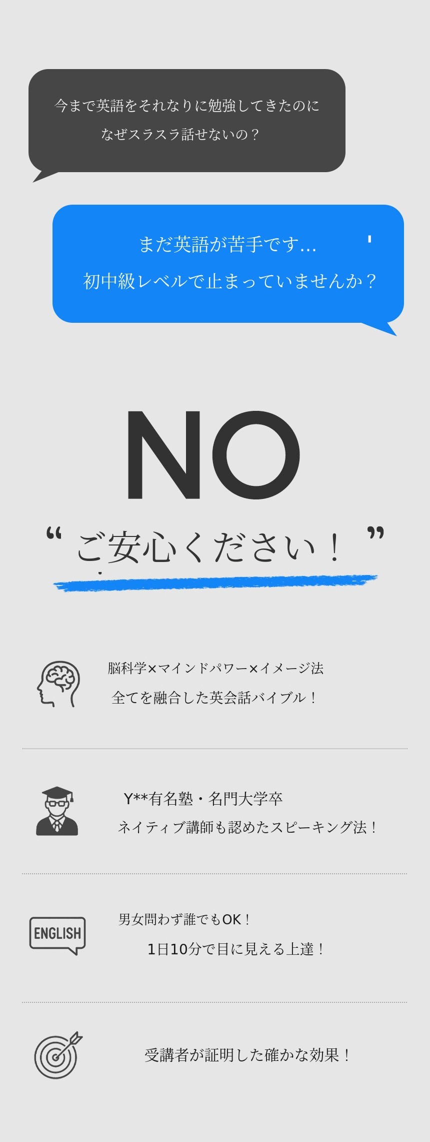 自分なりにコツコツ、または時々英語の勉強をしながらも諦めずにここまで来られたあなた。これまでの努力と苦労が無駄にならないよう、このプロジェクトを通じてあなたがより自信のある英語力と豊かな未来 を築いていけるよう、しっかりとしたパートナーになります。