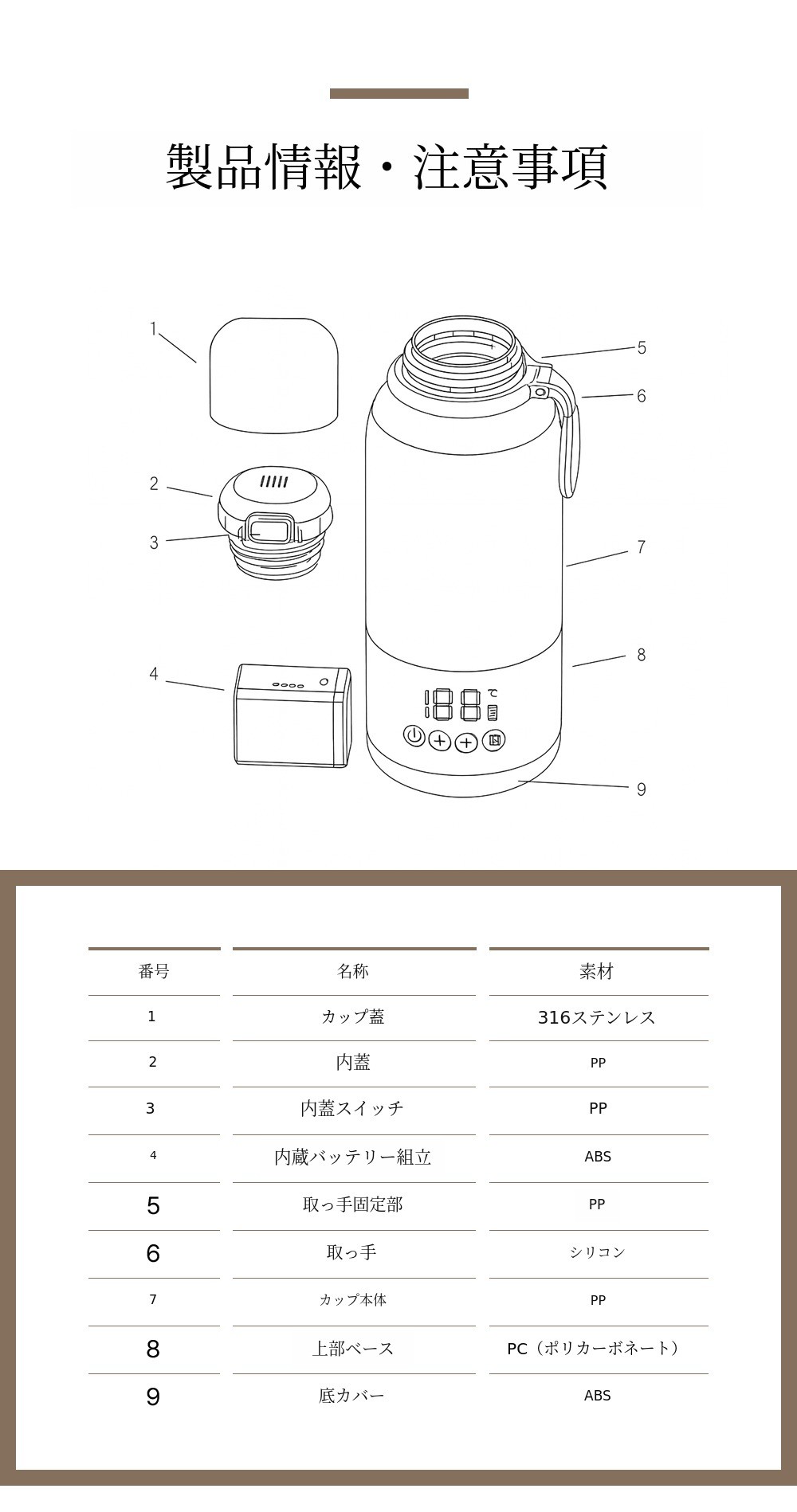 - 保温ボトルの表面や加熱板が損傷しないよう、鋭利な金属物や洗浄器具で加熱板の表面をこすらないでください。