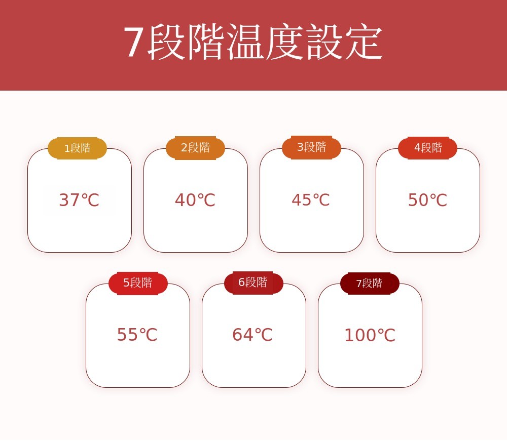 7段階の温度調節も可能ですが、37~65度までは1度単位で繊細に温度調節ができます。