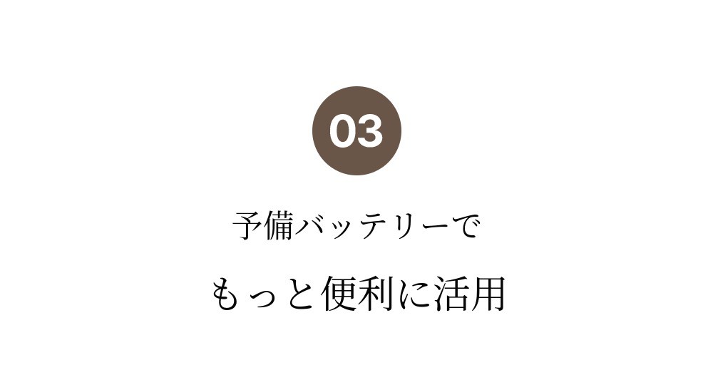 バッテリー交換式なので、予備バッテリーがあれば事前に充電して活用できます。一つのバッテリーが切れたら、事前に充電しておいた別のバッテリーに交換して使えば、さらに長く使用できます。