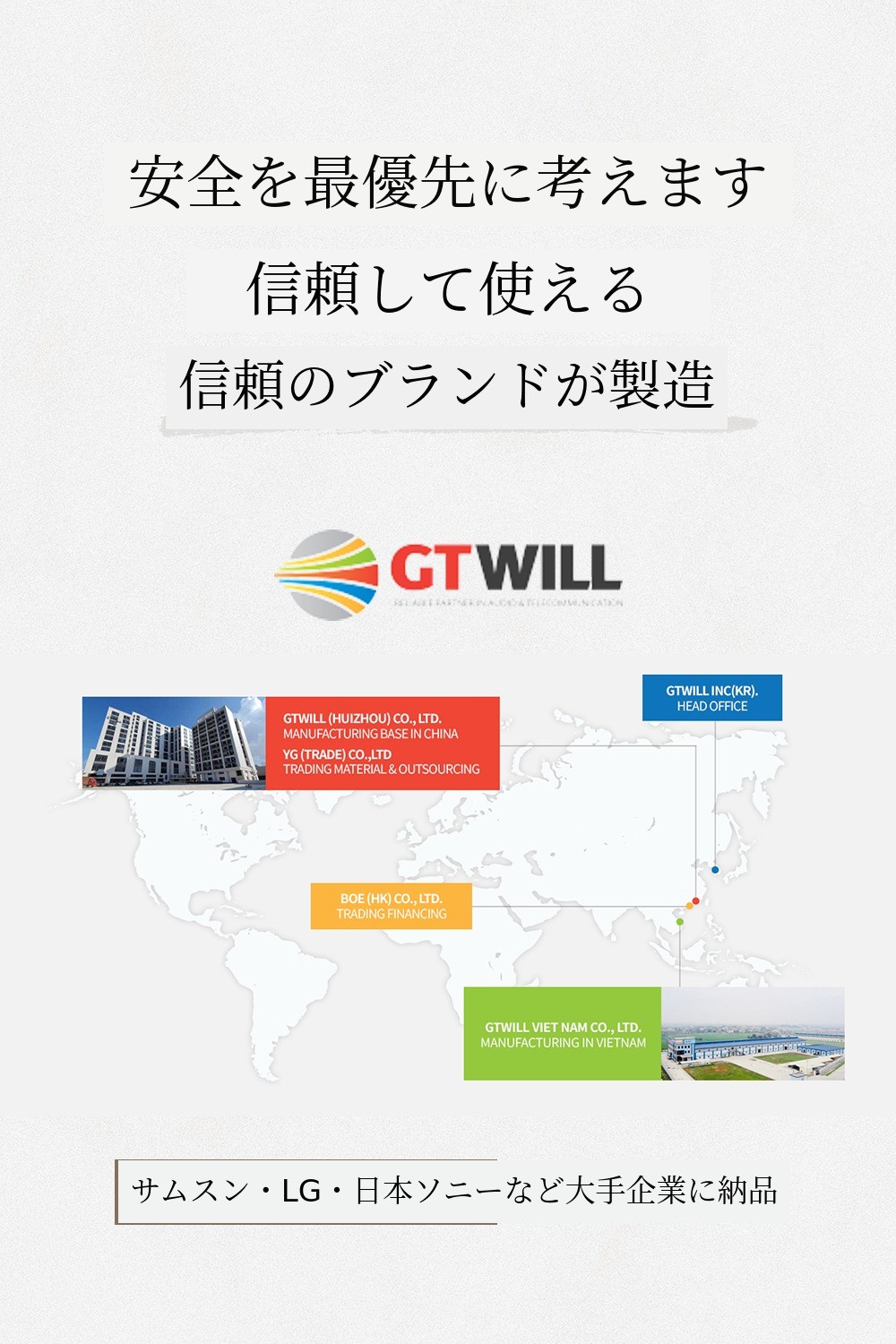 協力によって誕生しました。電子・電線製品専門企業GTWILLの技術ノウハウが加わり