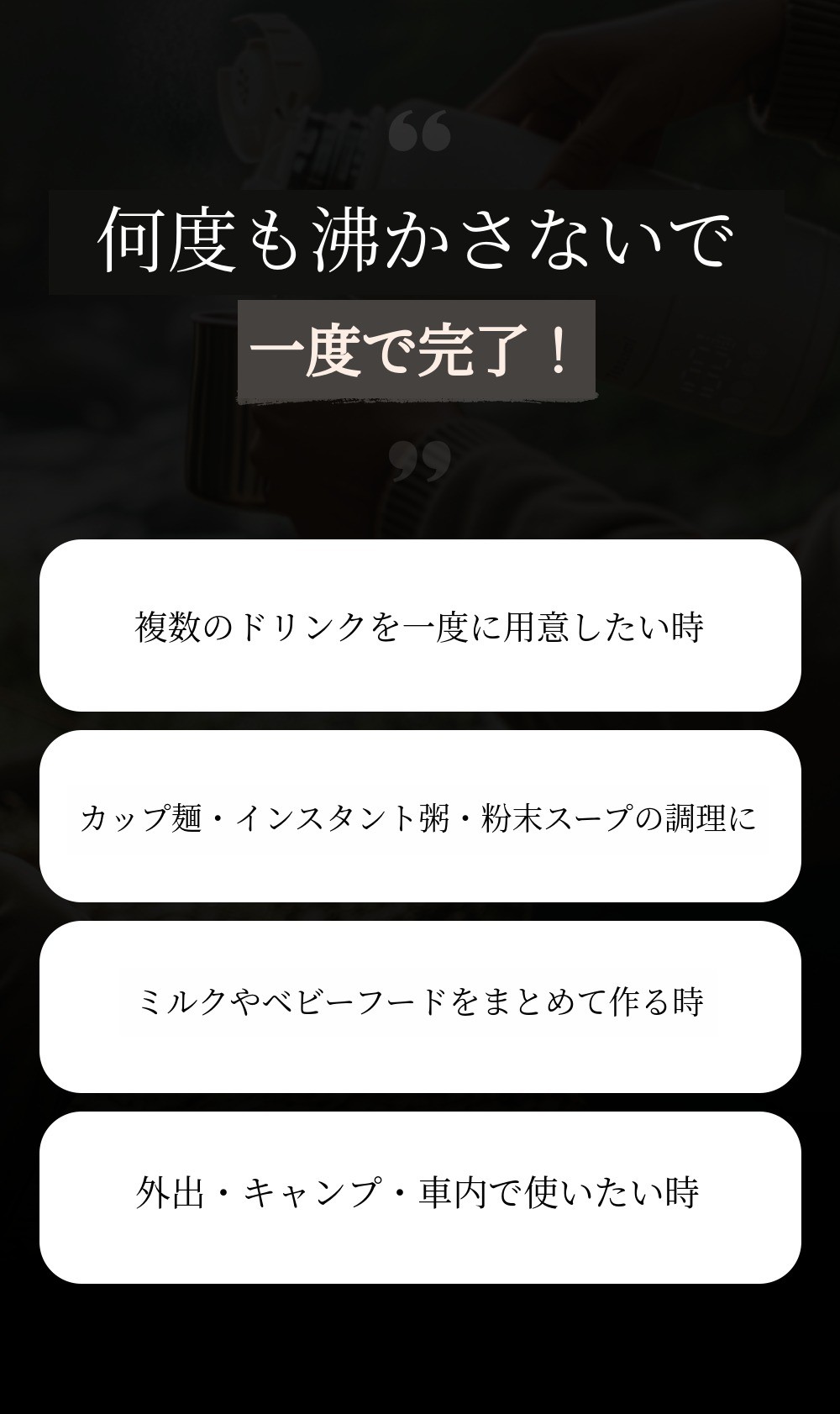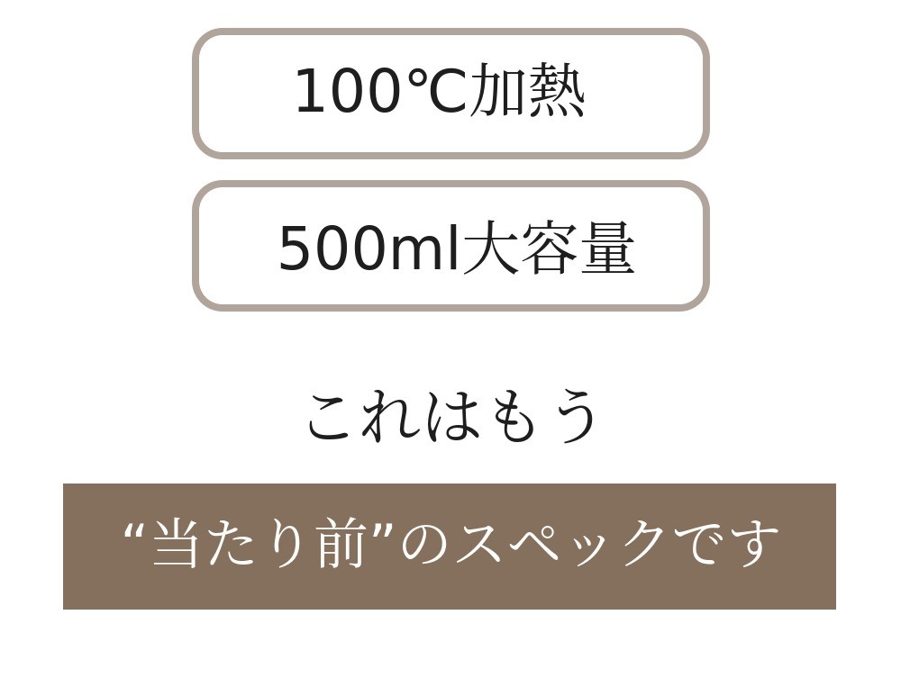 他社は一般的に350ML容量でしたが500ML大容量で一度沸かすだけで何度も使用できます。
