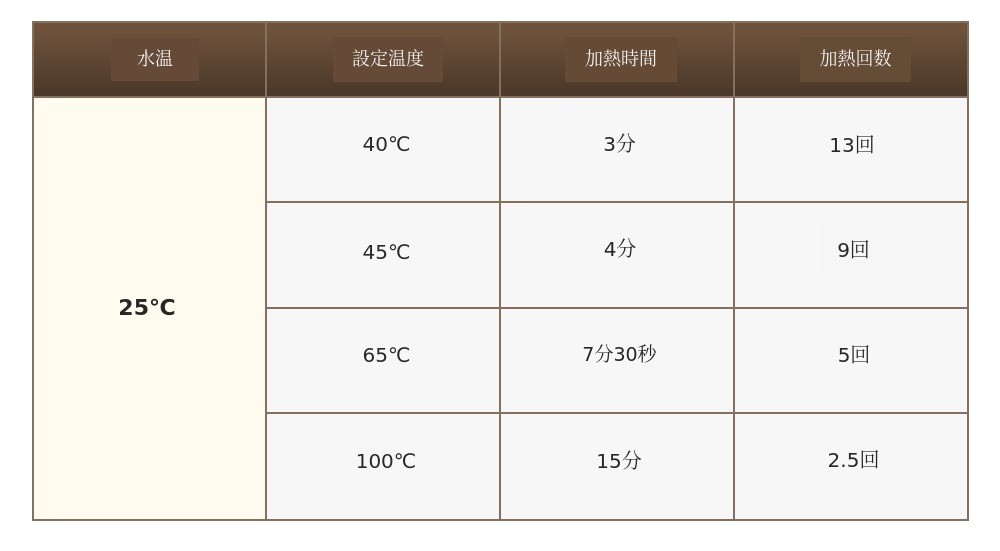 * 25℃の水温から100℃に加熱した場合の使用回数