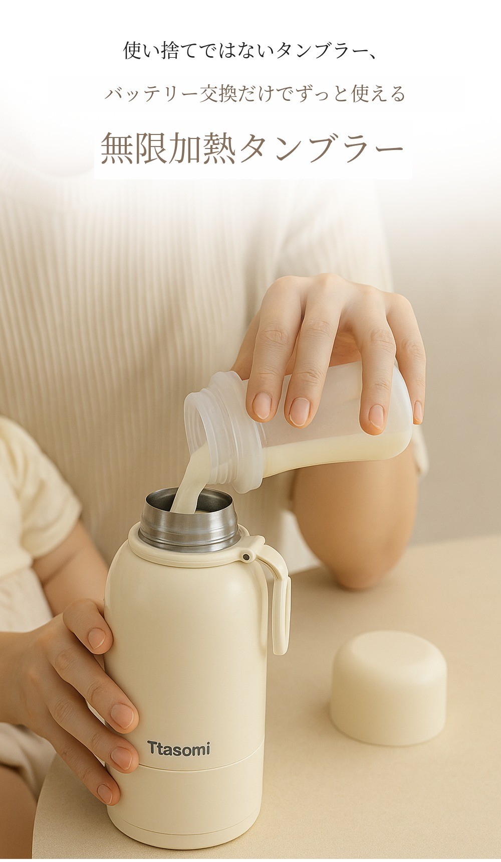 自宅で子供のために粉ミルクを作る時も、離乳食を作る時も、タスミ加熱タンブラーさえあれば簡単に作ることができます。