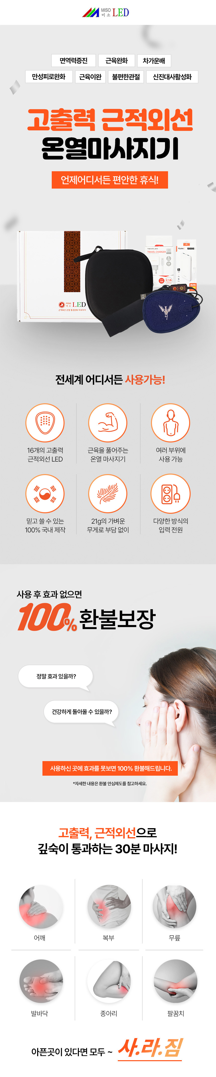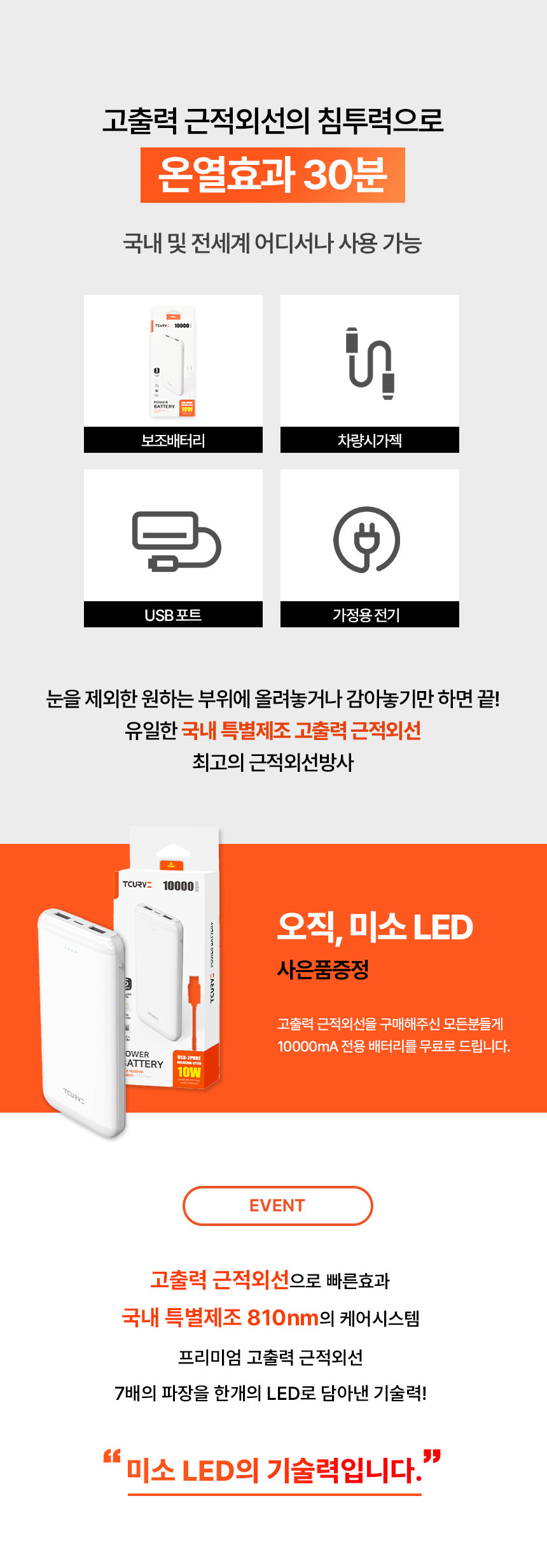 서포터분들께 제대로된 근적외선 효능을 알려드리기 위해 내부 스펙에 효능 효과 온열 기능에 집중하여 개발하였습니다.