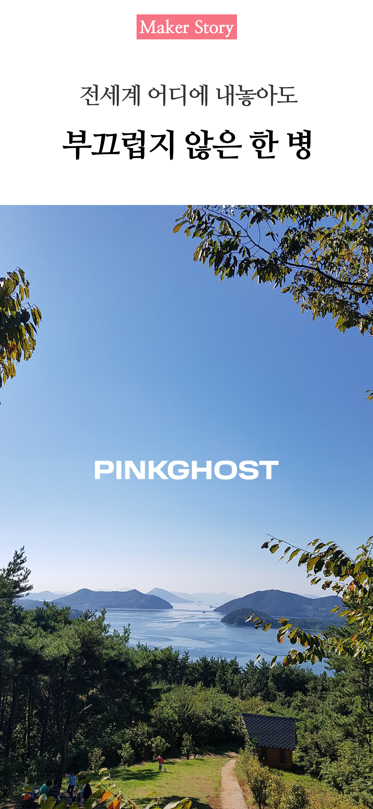 동백꽃이 만발한 거제도에서 나고 자라, 저도 모르게 거제도 로컬 브랜드 핑크 고스트를 운영하고 있는 본부장 정은희입니다. 헤어 시럽의 와디즈 프로젝트가 벌써 몇 번째인지도 모르겠어서 아마 제 사진이 익숙한 분들도 많으실 거예요.