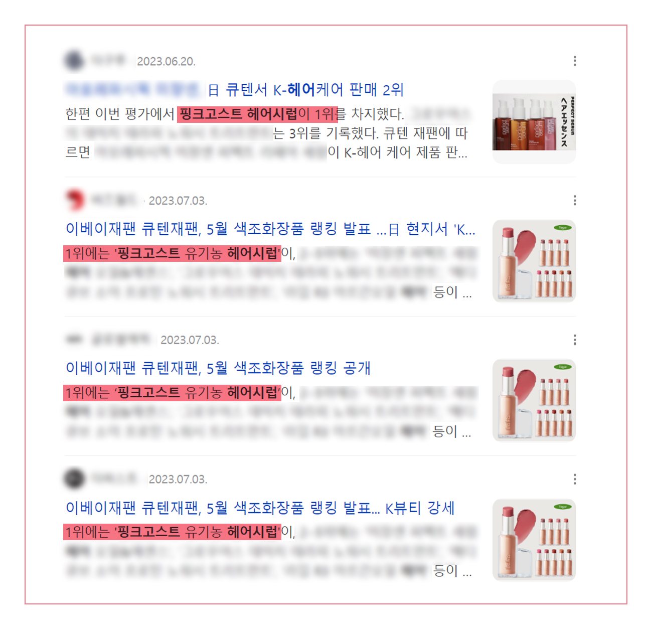 와디즈에서 첫 선을 보였던 헤어 시럽은 그간 외부에서도 차근차근 성장해서 지금은 일본 시장에서도 만나보실 수 있답니다. 그리고 작년 2023년, 일본을 꽉 쥐고 있는 커머스 Q100에서 기어이 1등을 했어요.