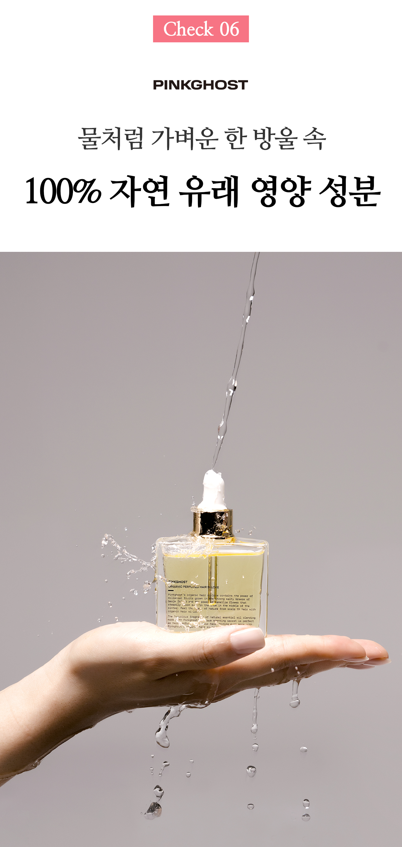 모발 속으로 스며든 뒤에 천천히 스며나오는 100% 천연 오일의 근본적으로 다른 찰랑임과 반짝임, 그리고 떡지지 않는 가벼움을 직접 느껴보세요.