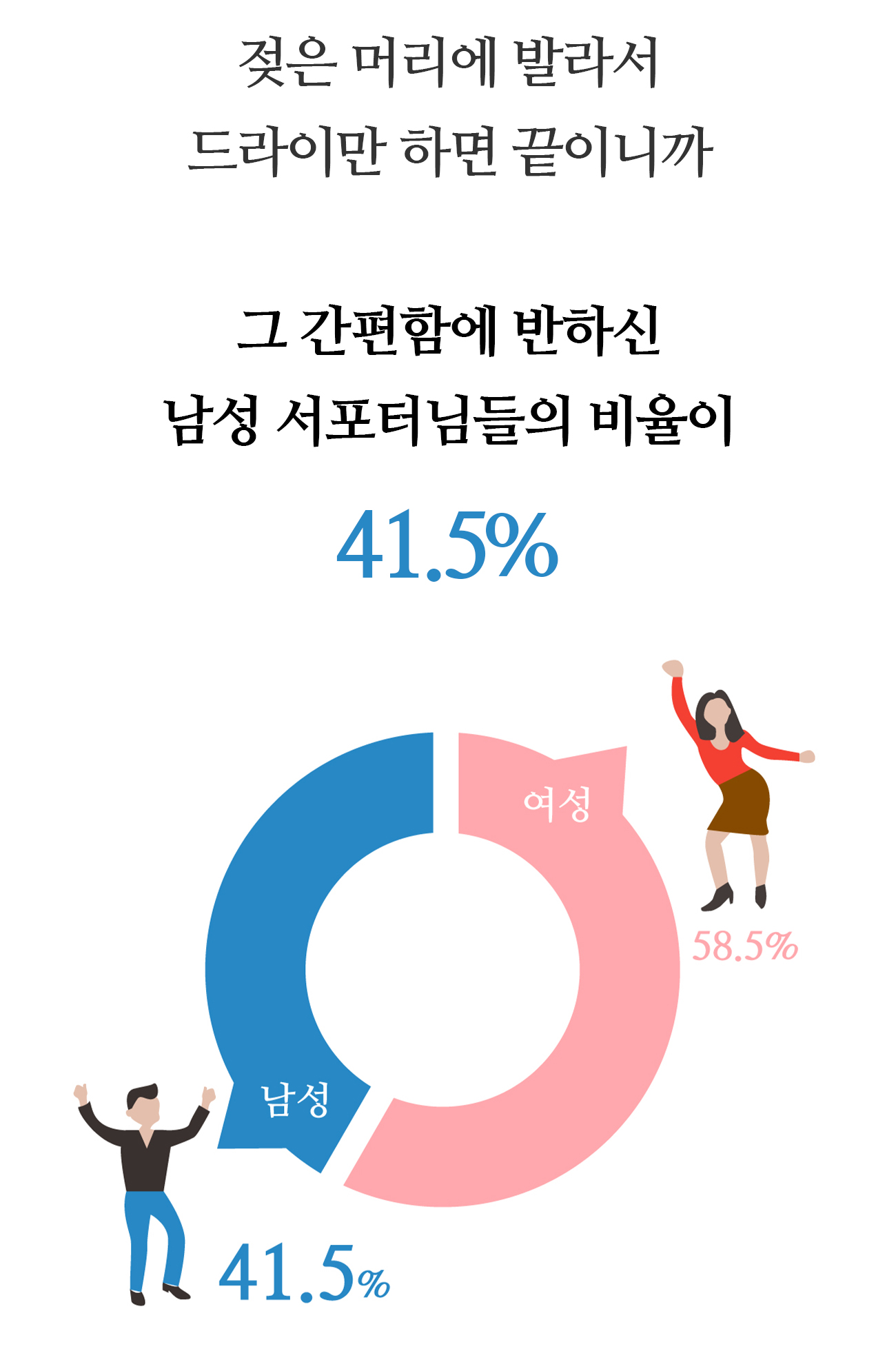 청담동 헤어 시럽은 처음 프로젝트를 시작했을 때부터 지금까지 꾸준히 여성 서포터님과 남성 서포터님의 비중이 6:4 정도를 유지합니다.