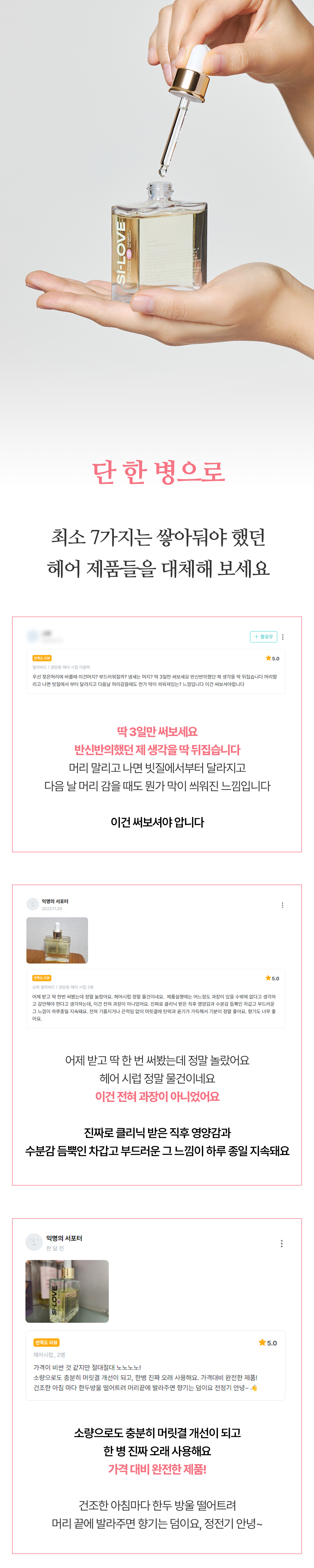 직접 경험하셨기 때문에 발생하는 거였어요. 이것 저것 바를 게 아니라 헤어 시럽 하나만 바르면 되니, 머리가 떡질 일이 애초에 없는 거예요.