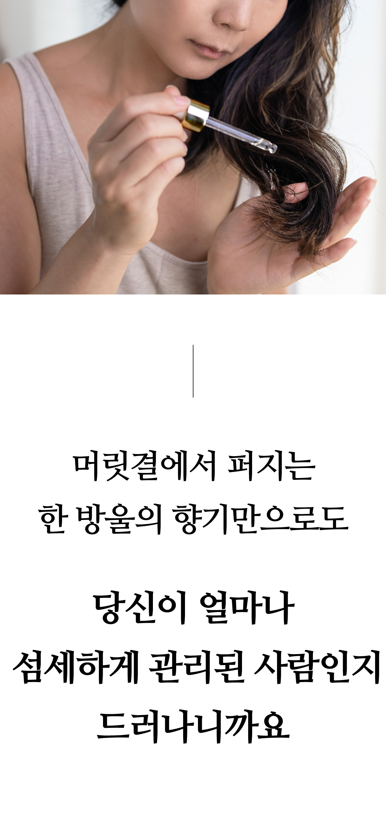 향수 대신 사용해 주셔도 좋아요. 머릿결을 따라 발라주신 뒤 손목이나 목 쪽에 한두 방울 더 톡톡 흘려 주시면 끝!
