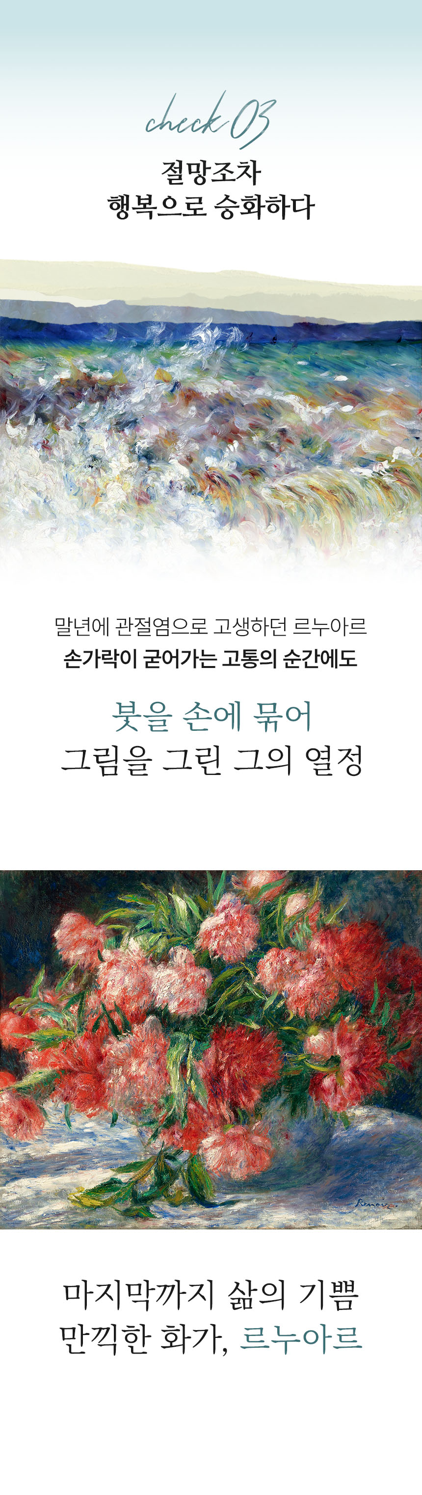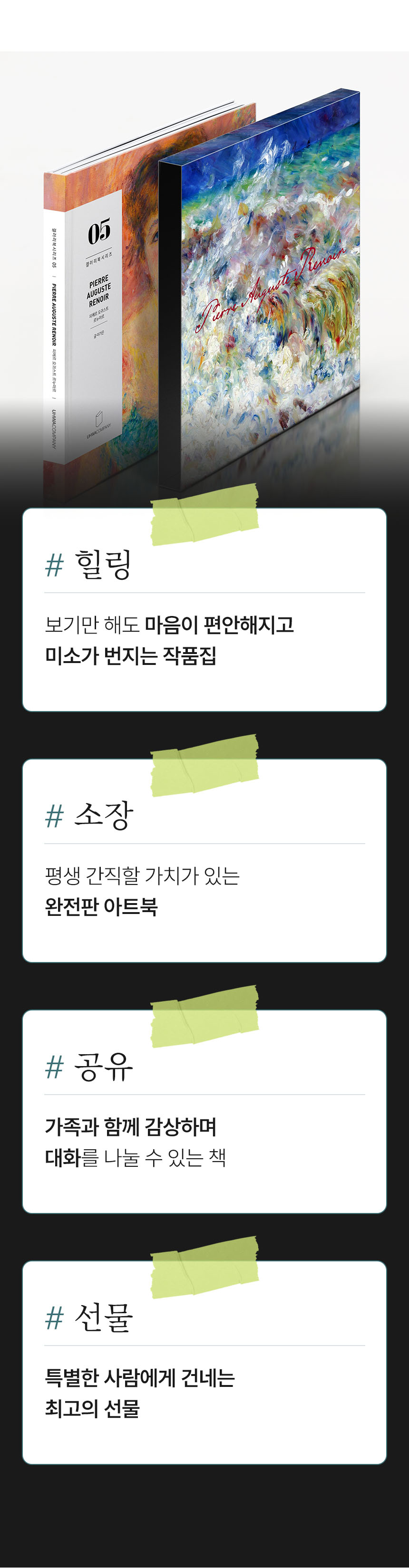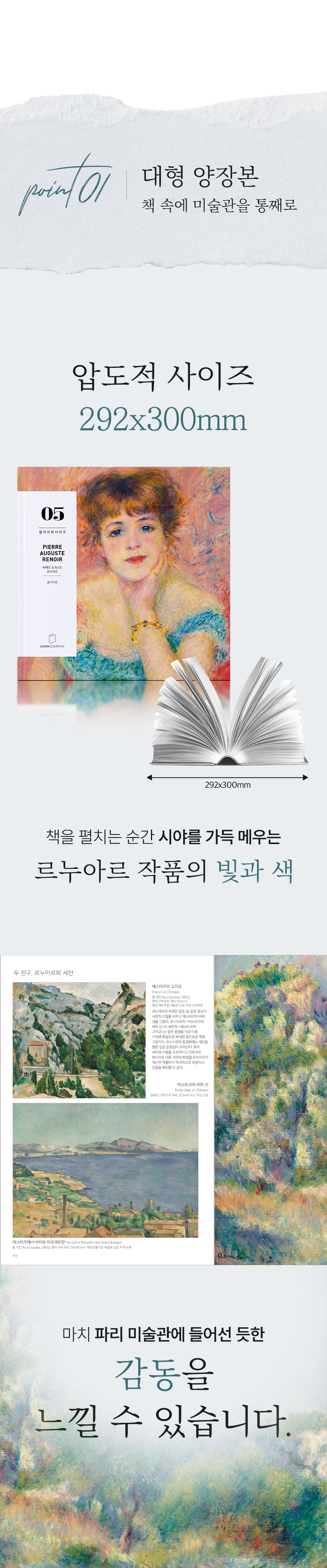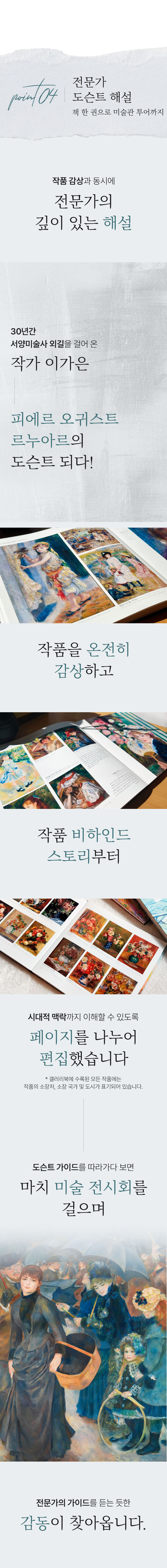 겉보기엔 평범한 미술책처럼 보일지도 모릅니다. 하지만 그 안에는 진짜 감동을 전하고 싶은 간절한 마음과 기술이 담겨 있습니다. 명화의 색채, 질감, 그리고 그 속에 깃든 예술가의 숨결까지 느낄 수 있도록 단 한 페이지, 한 장의 인쇄까지 직접 연구하며 만들어 왔습니다.