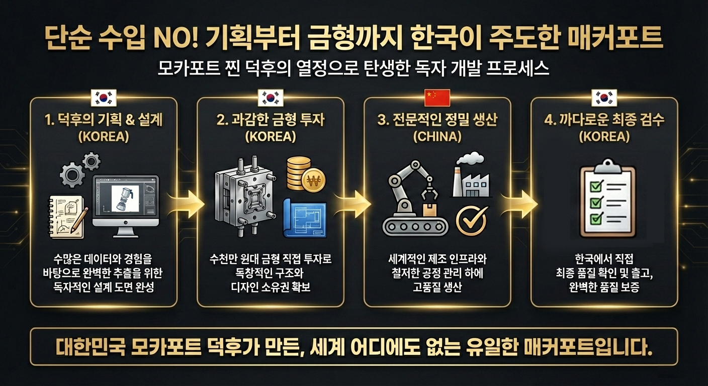 국내에서는 이런 공정을 소화할 수 있는 곳이 없어 생산은 중국에서 진행하지만, 매커의 독자적인 제품입니다.